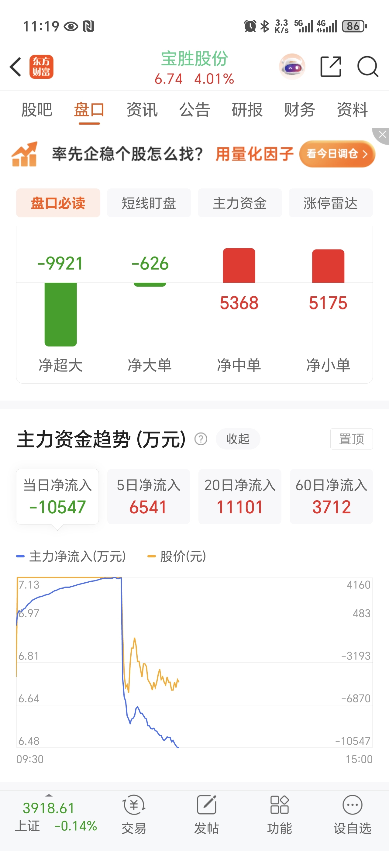 $宝胜股份(SH600973)$ 主力都一直在跑还有不怕高的往里面冲!作死么,主力要想拉上去会等这么久让散户都进去再拉吗???