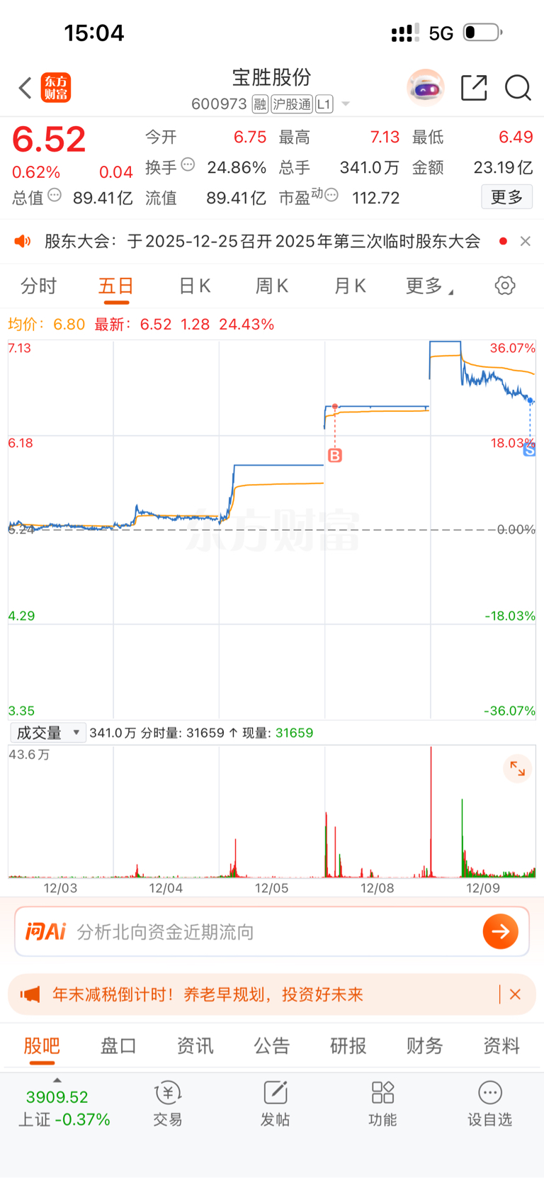 $宝胜股份(SH600973)$ 哎,本来今天走势很好的,不知道哪来的资金砸盘。我今天已经够格局了,但是不看好明天