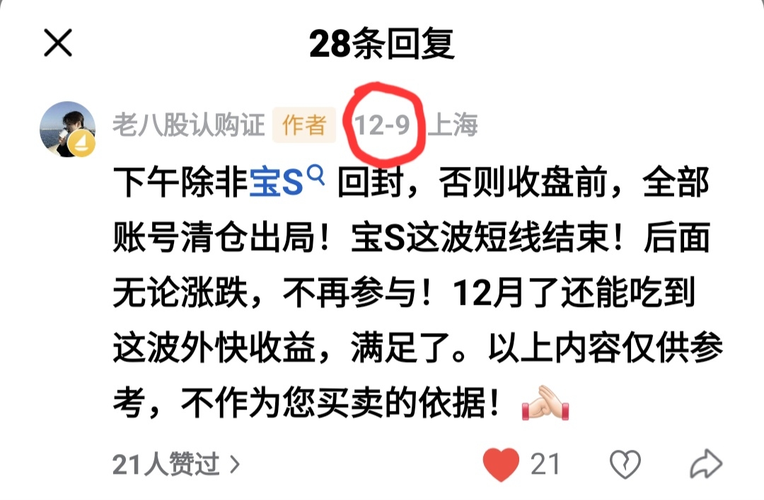 昨天下午在主平台上,给粉丝们的提示留言帖!我们昨天下午全部止盈清仓出局!以上内容