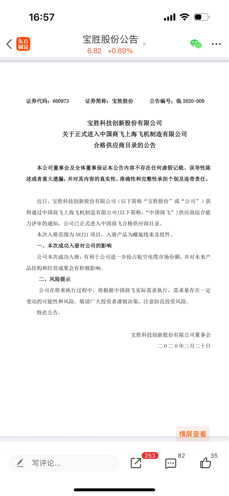 $宝胜股份(SH600973)$