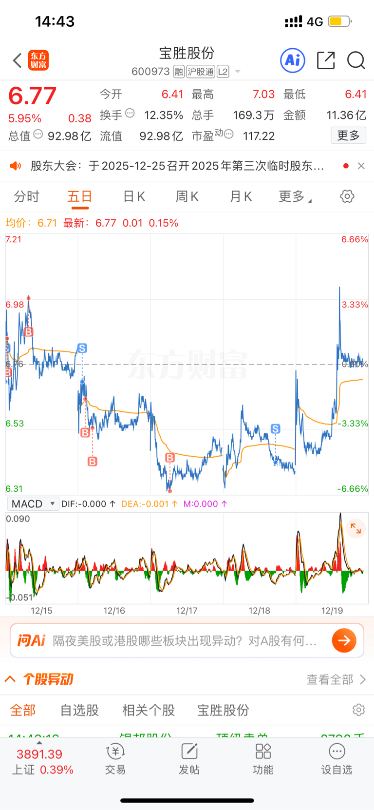 $宝胜股份(SH600973)$ 割肉卖飞一个涨停板 你真牛逼 主力