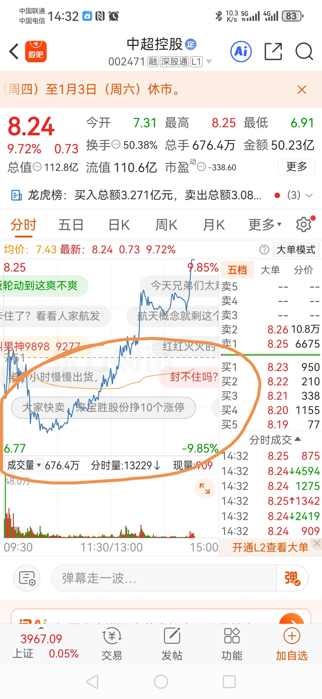 谁?这是谁?竟然去中超打广告去了还这么响亮………10个涨停