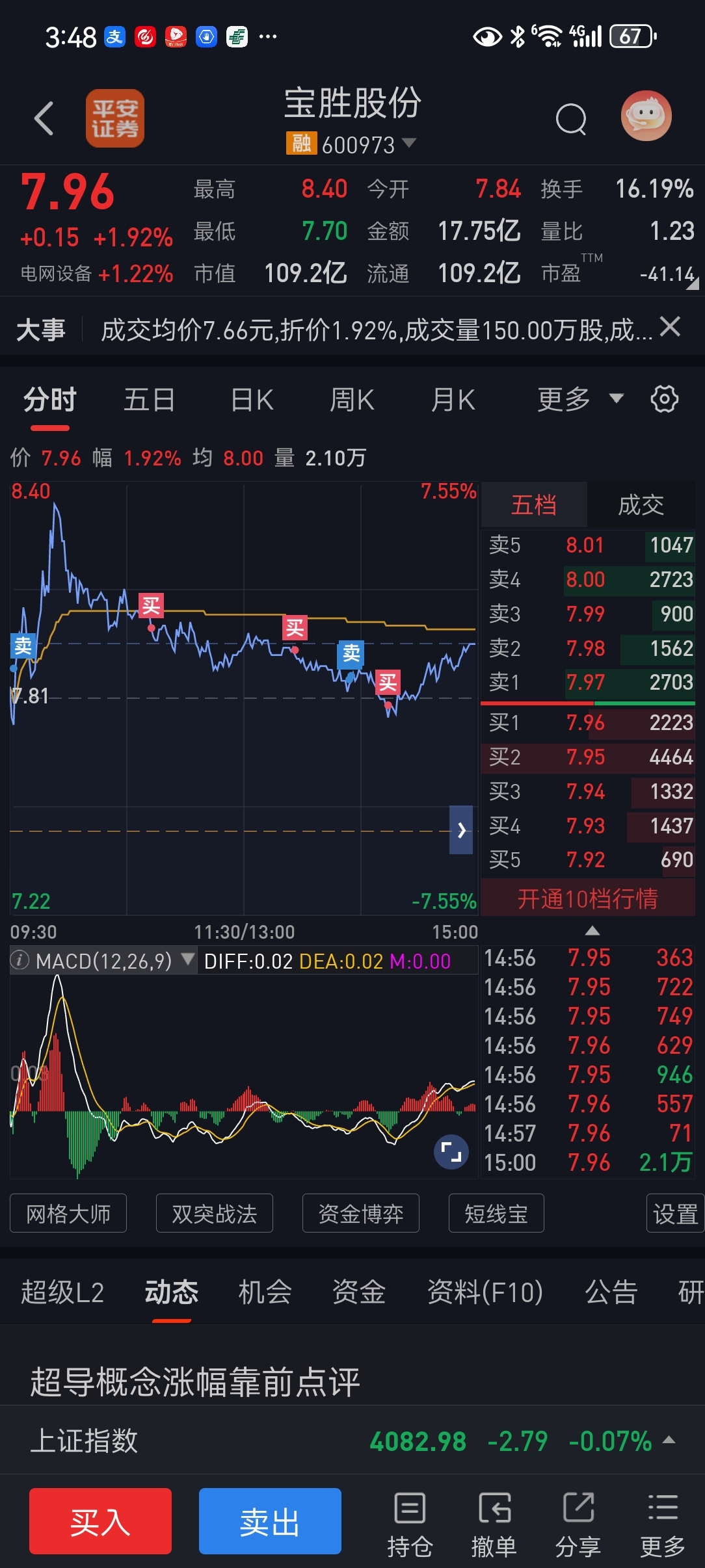 $宝胜股份(SH600973)$ 我说今天做T赚1300你们信不信?