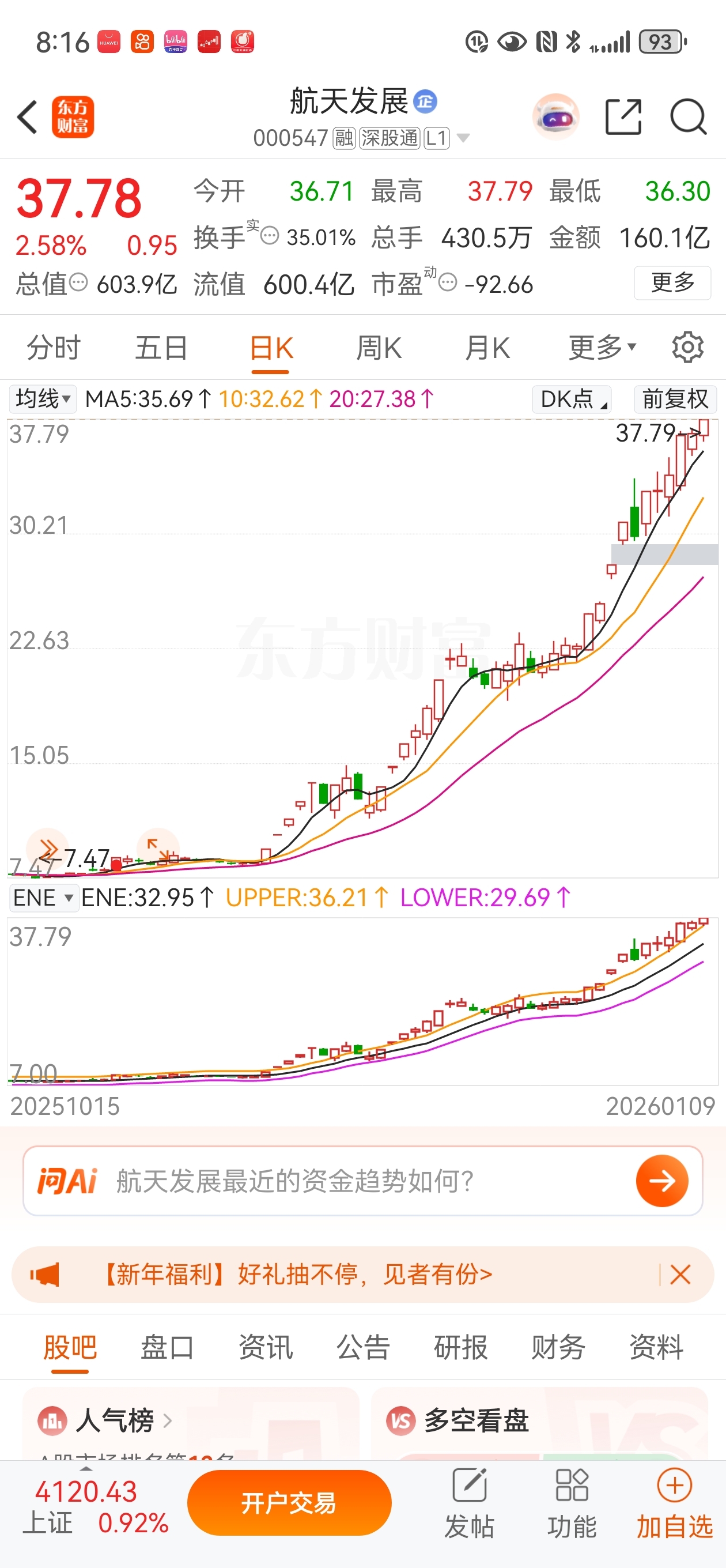 $宝胜股份(SH600973)$ 从 7 块到 37航天发展,宝胜是 6 块开始涨起,高速平行线研制超导电缆,可控核聚变概念,军工线速,核电线速,央企控股,航空航天,据说还在研制可控核聚变,超导,这么多的概念,想象空间巨大。