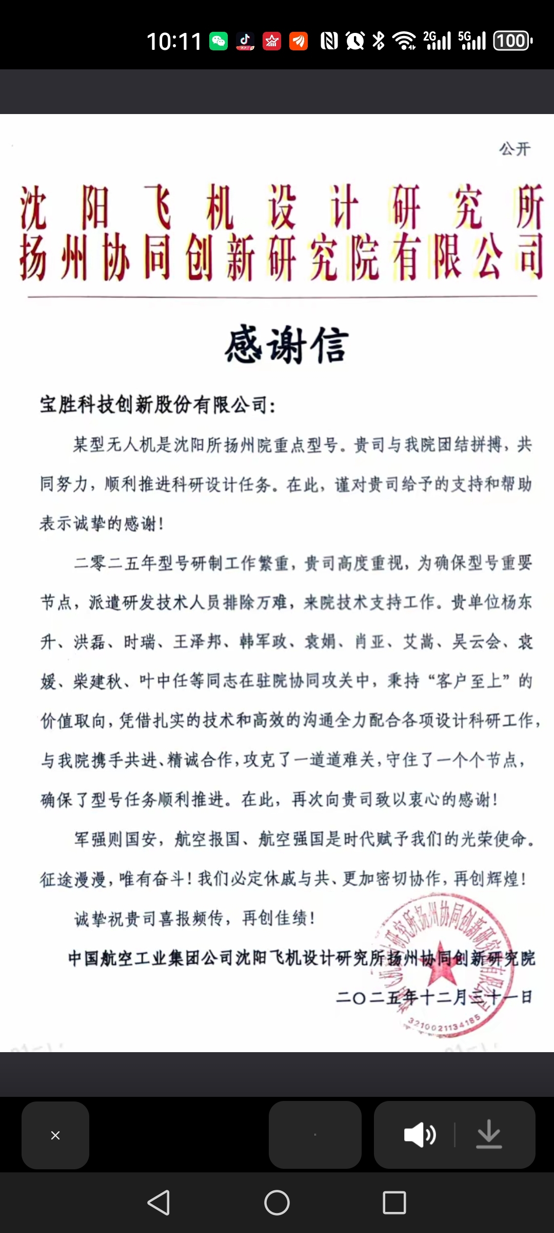 $宝胜股份(SH600973)$ 宝胜参与新型无人机项目