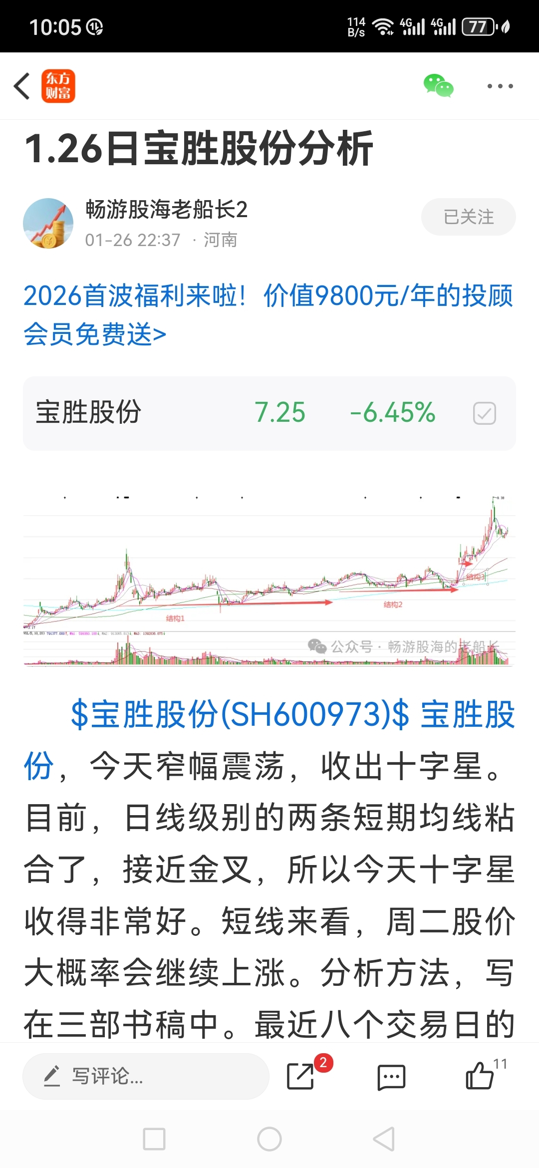 $宝胜股份(SH600973)$ 快买吗?船长说涨?不知道船长是不是翻船了!买定离手