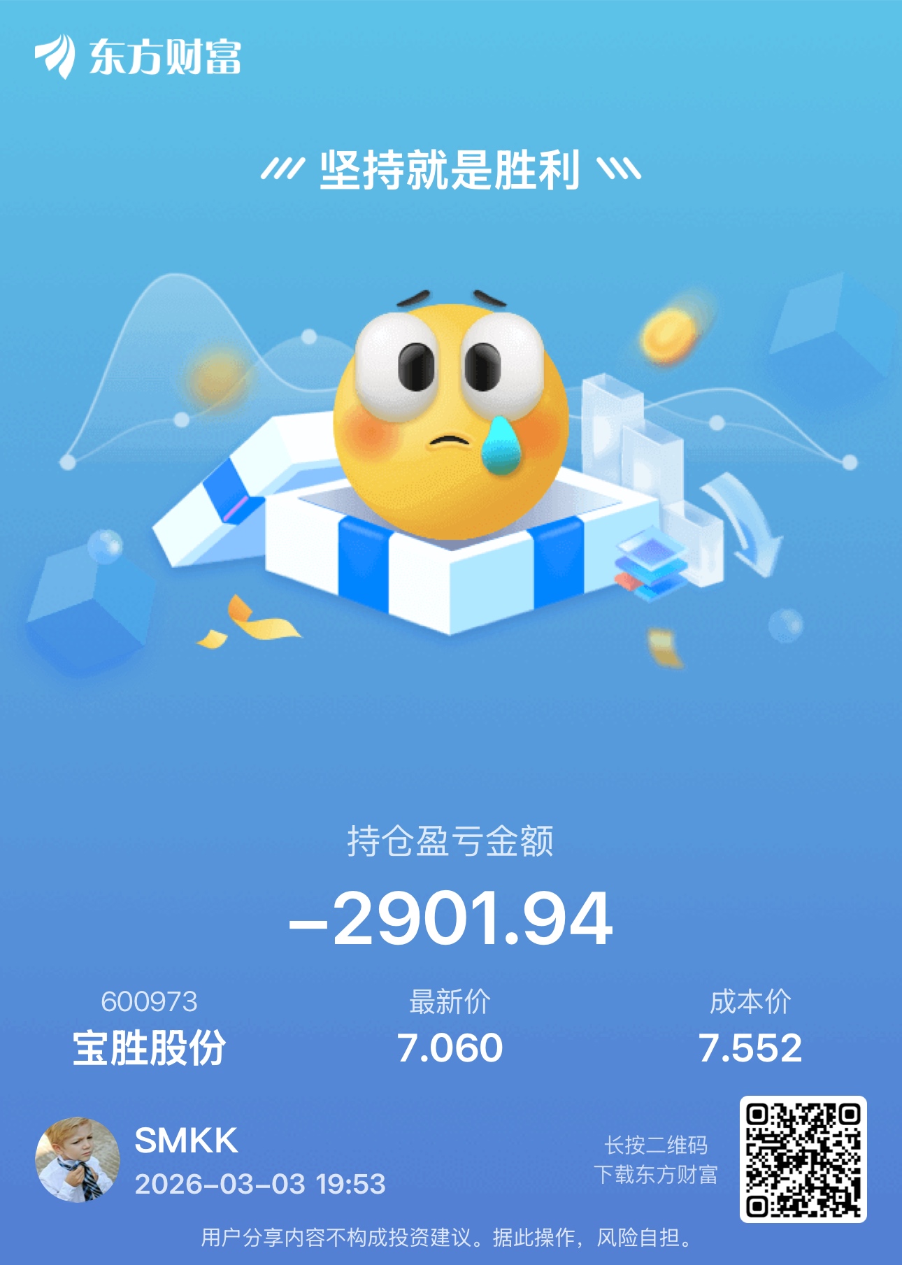 温馨提示: 1.根据《证券法》规定,禁止编造、传播虚假信息或者误导性信息,扰乱证券市场;2.用户在本社区发表的所有资料、言论等仅代表个人观点,与本网站立场无关,不对您构成任何投资建议。用户应基于自己的独立判断,自行决定证券投资并承担相应风险。《东方财富社区管理规定》
