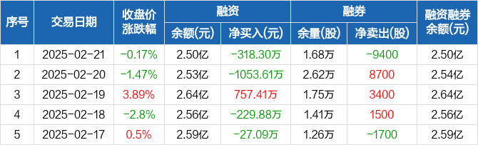 新五丰:融资净偿还318.3万元,融资余额2.5亿元(02-21)