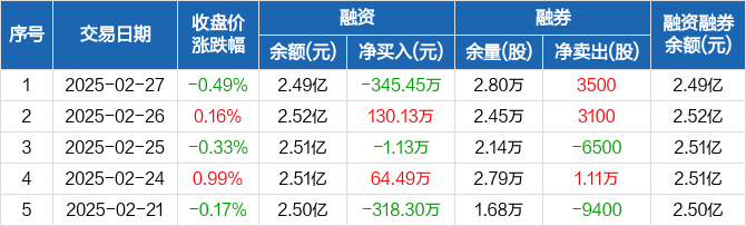 新五丰:融资净偿还345.45万元,融资余额2.49亿元(02-27)