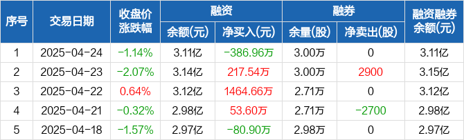 新五丰:融资净偿还386.96万元,融资余额3.11亿元(04-24)