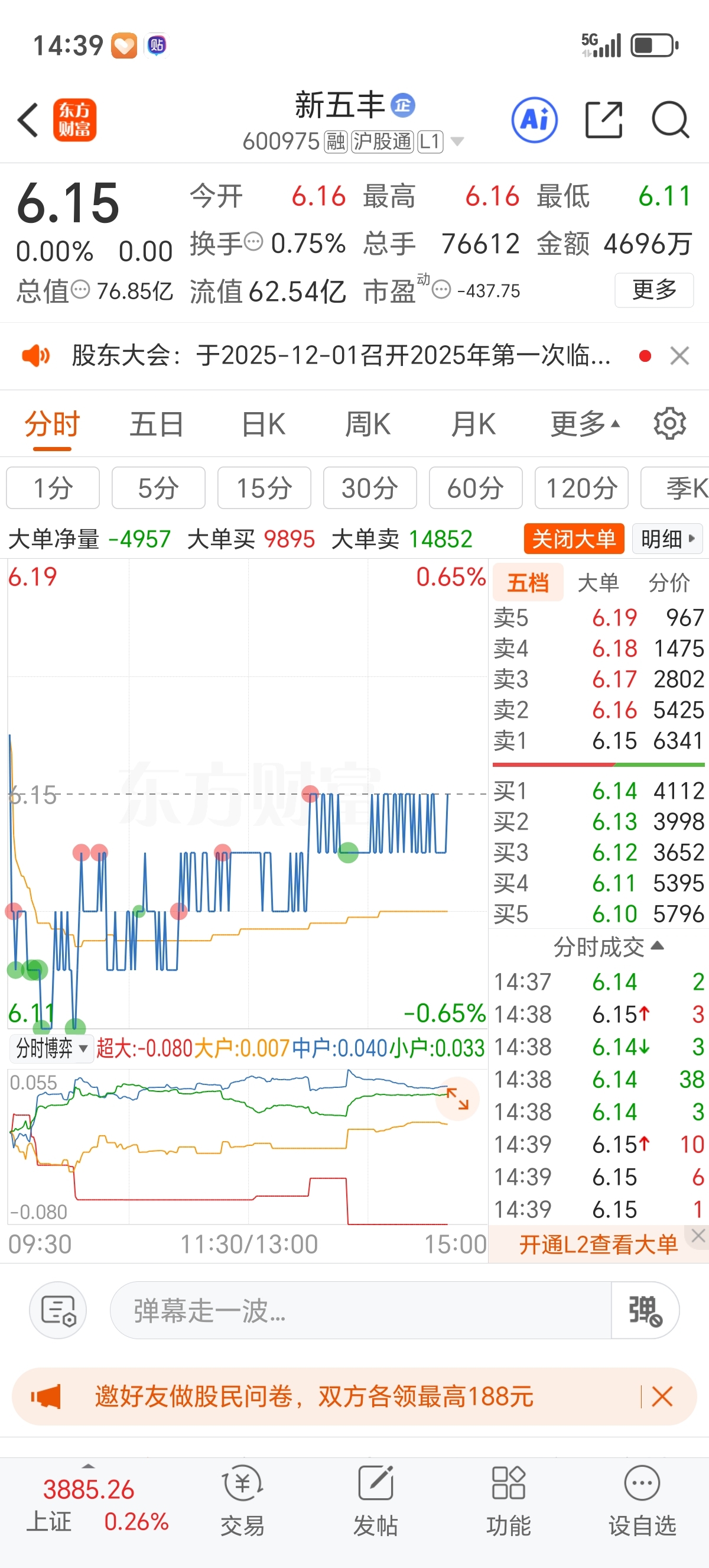 $新五丰(SH600975)$ 成交量连5000万都没有。垃圾到无人关注