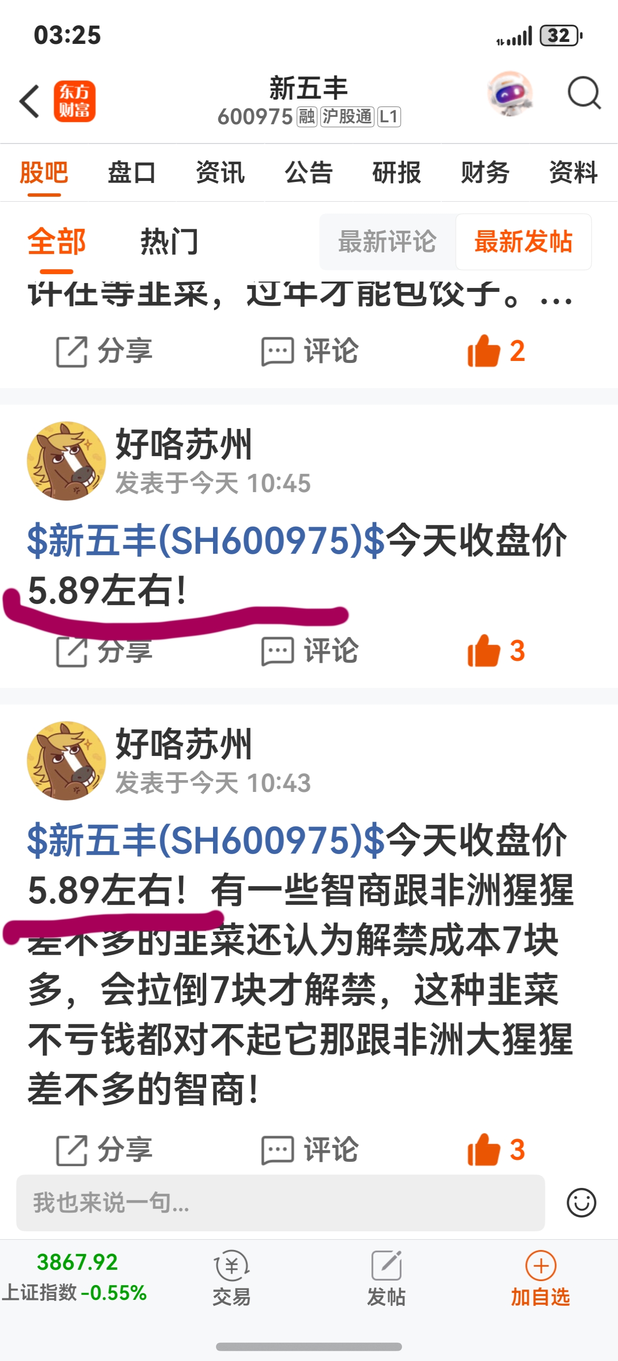 $新五丰(SH600975)$ 还会跌!解禁到来之前还会挖大坑!韭菜亏钱基本都为智商因素所致,别无其他! 5.5 以上慎入!2025.12.15
