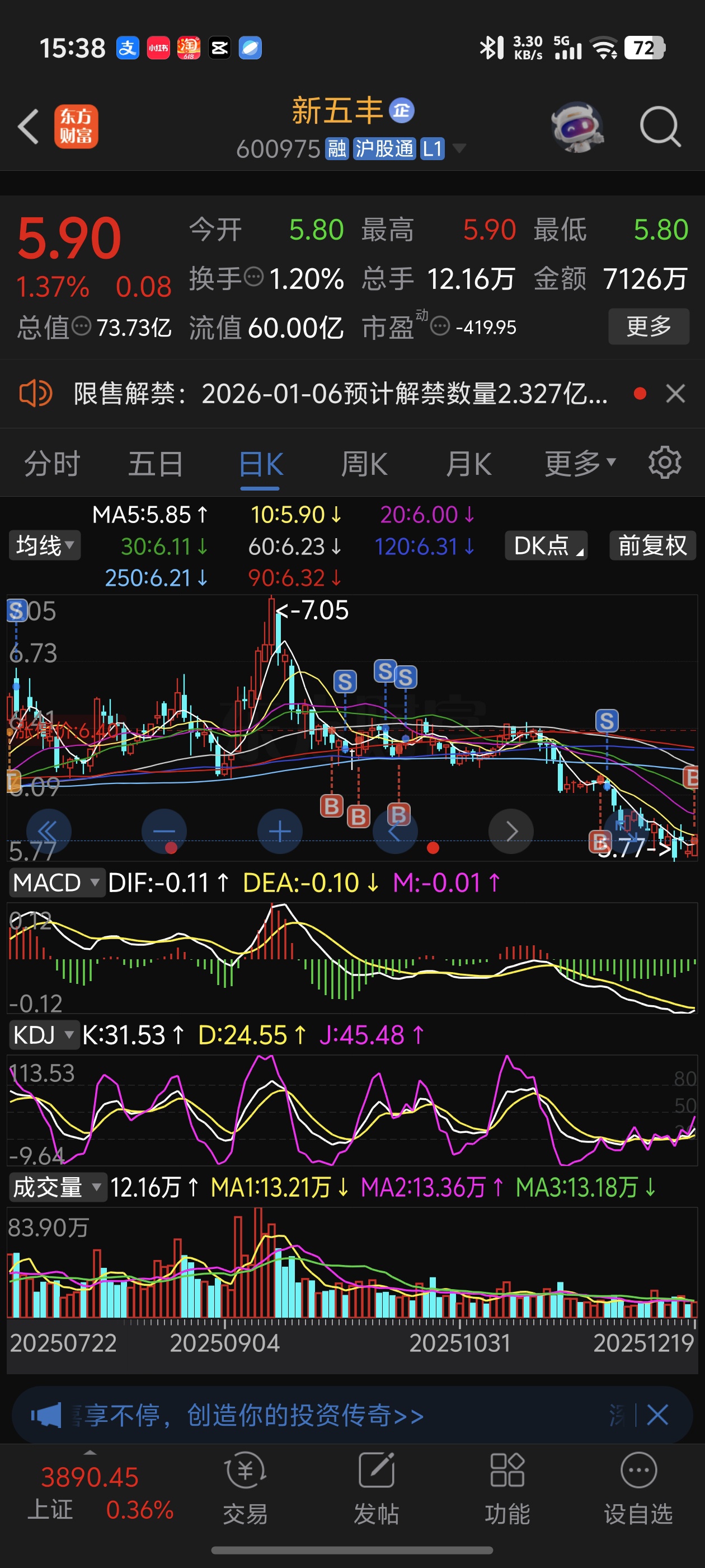 $新五丰(SH600975)$ 我胡汉三又回来了!