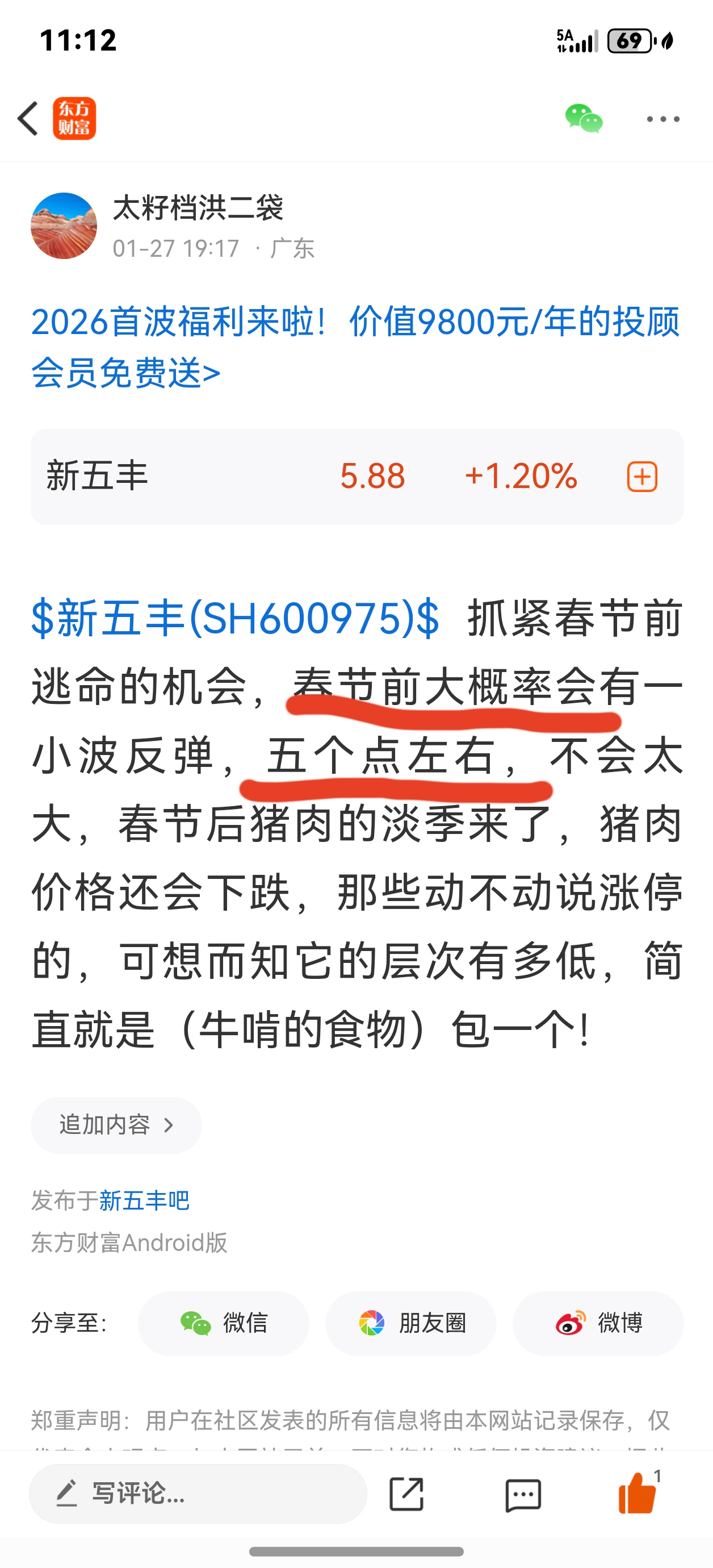 温馨提示: 1.根据《证券法》规定,禁止编造、传播虚假信息或者误导性信息,扰乱证券市场;2.用户在本社区发表的所有资料、言论等仅代表个人观点,与本网站立场无关,不对您构成任何投资建议。用户应基于自己的独立判断,自行决定证券投资并承担相应风险。《东方财富社区管理规定》