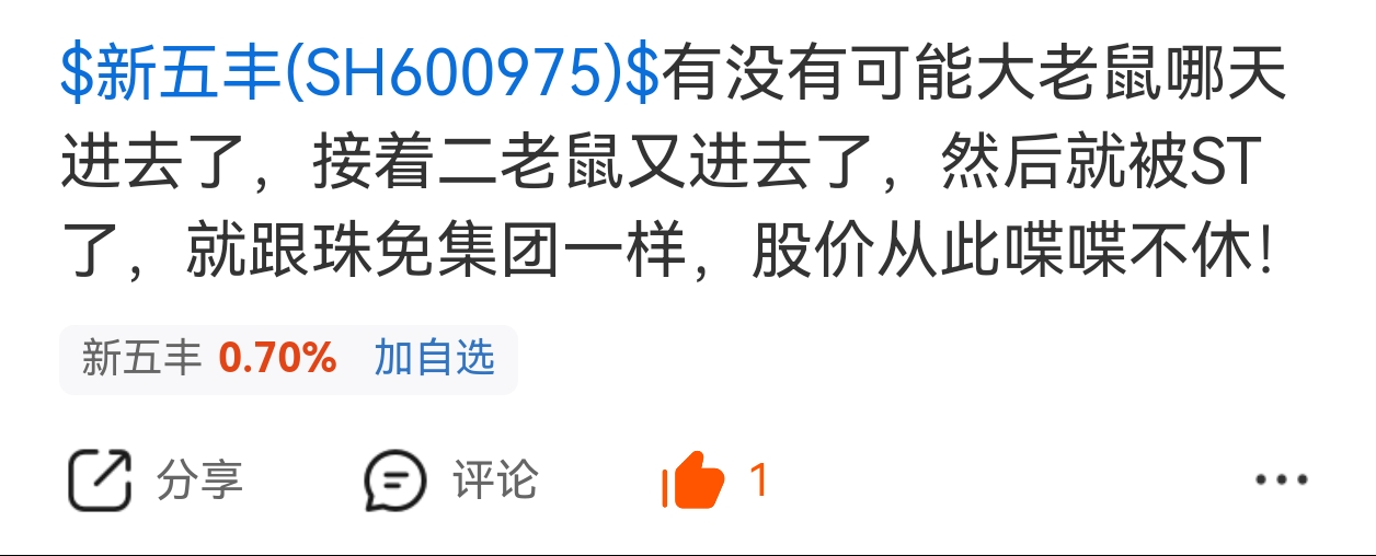 $新五丰(SH600975)$ 完了!