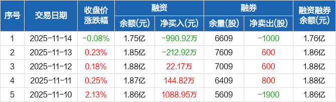健民集团:融资净偿还990.92万元,融资余额1.75亿元(11-14)