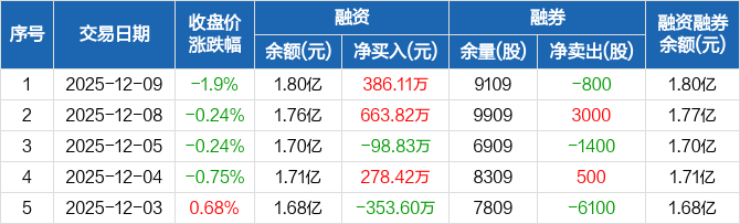 健民集团:融资净买入386.11万元,融资余额1.8亿元(12-09)