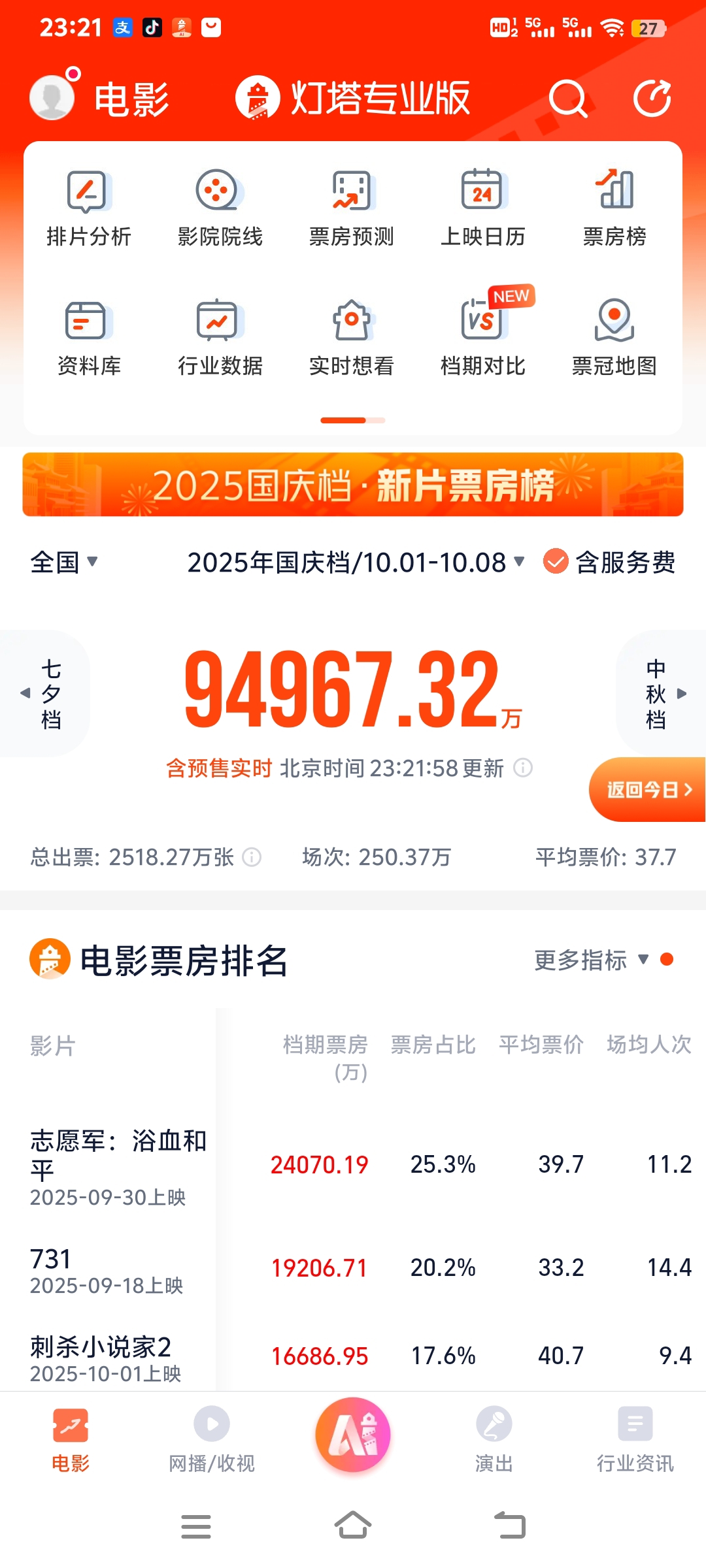 这票房跟2024年相比并不差,假期刚刚才三天。