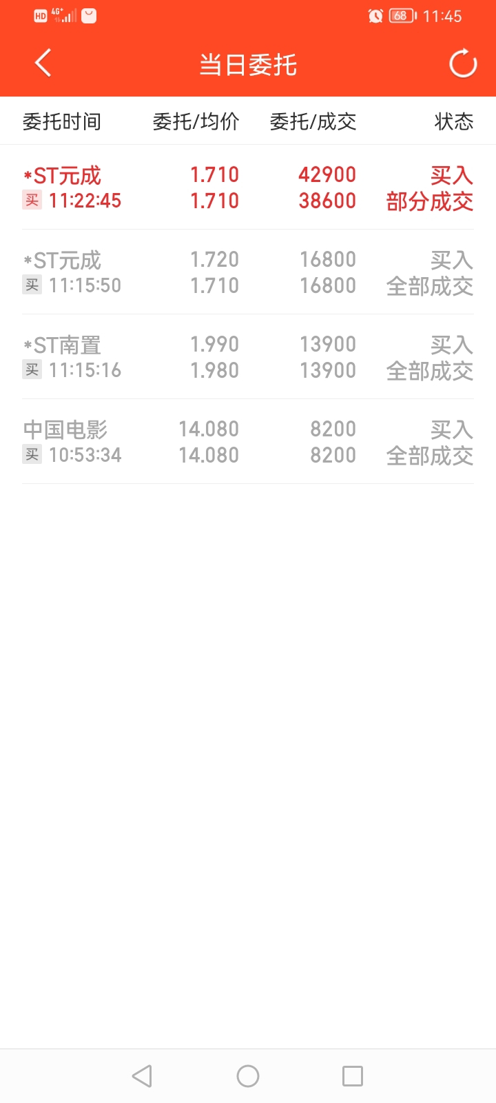 1.72抄底元成,1.99抄底南置,14.08抄底中国电影,大盘暴涨一毛没赚,买