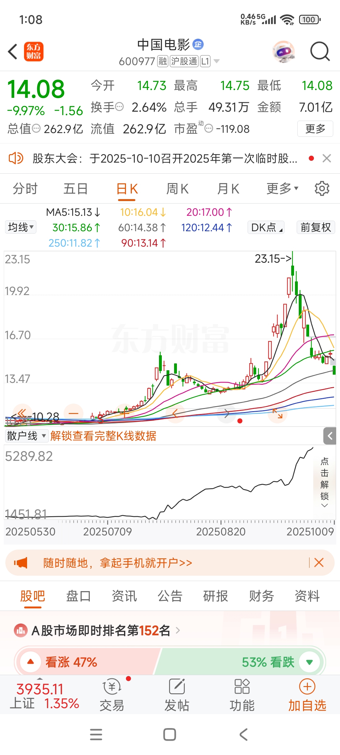 $中国电影(SH600977)$ 散户线跟价格成反比???