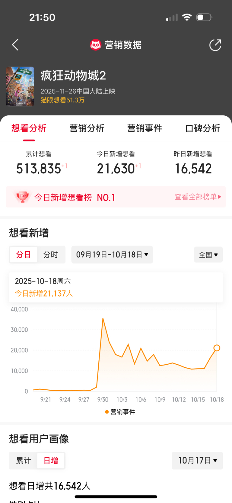 $中国电影(SH600977)$ 想看人数 节节攀升..拿到下个月20号再回来看..现在适合加仓