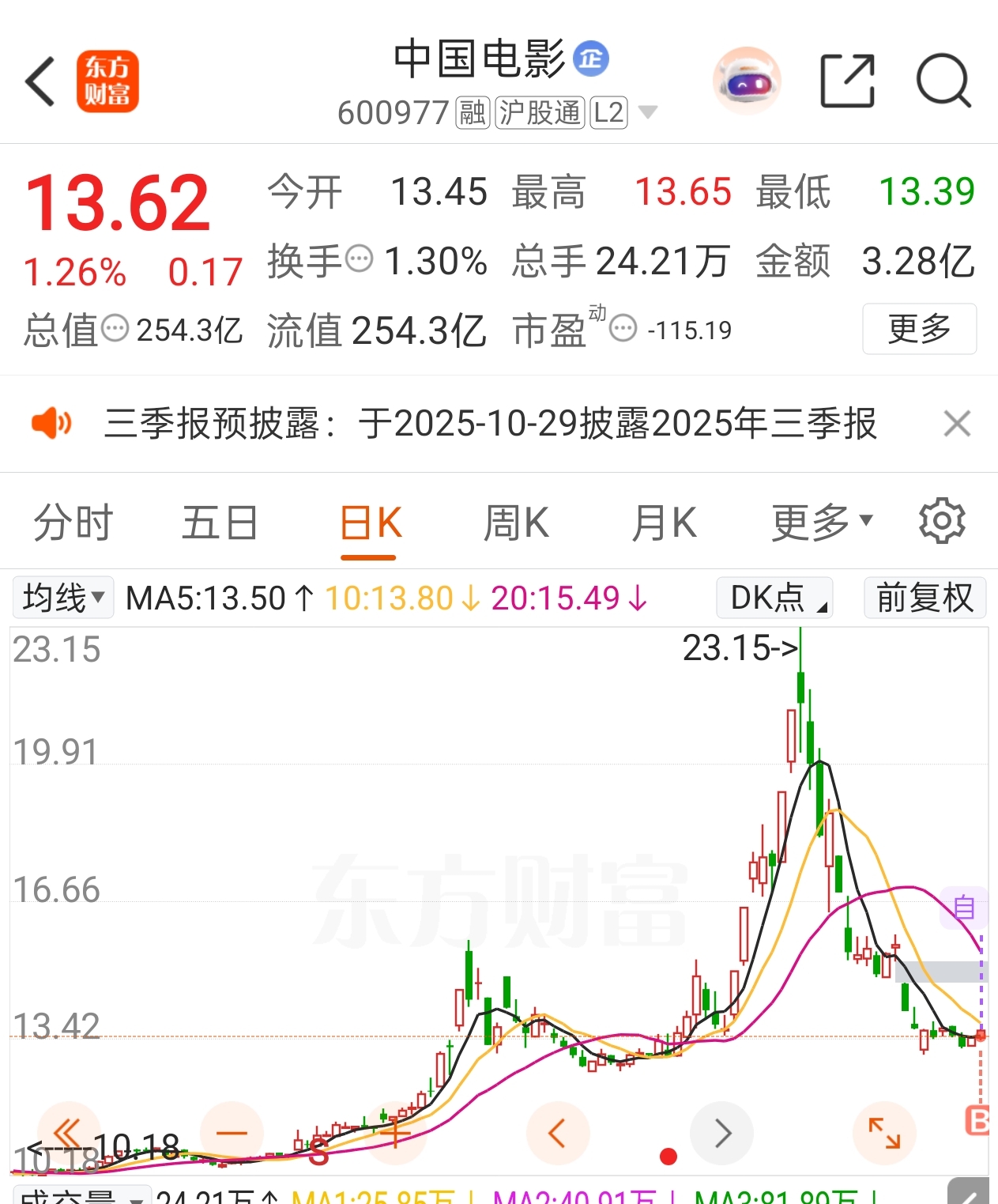 $中国电影(SH600977)$ 今天抄底了,但是还是感叹,这个A走的好特么标准,里面的老庄不是人呀