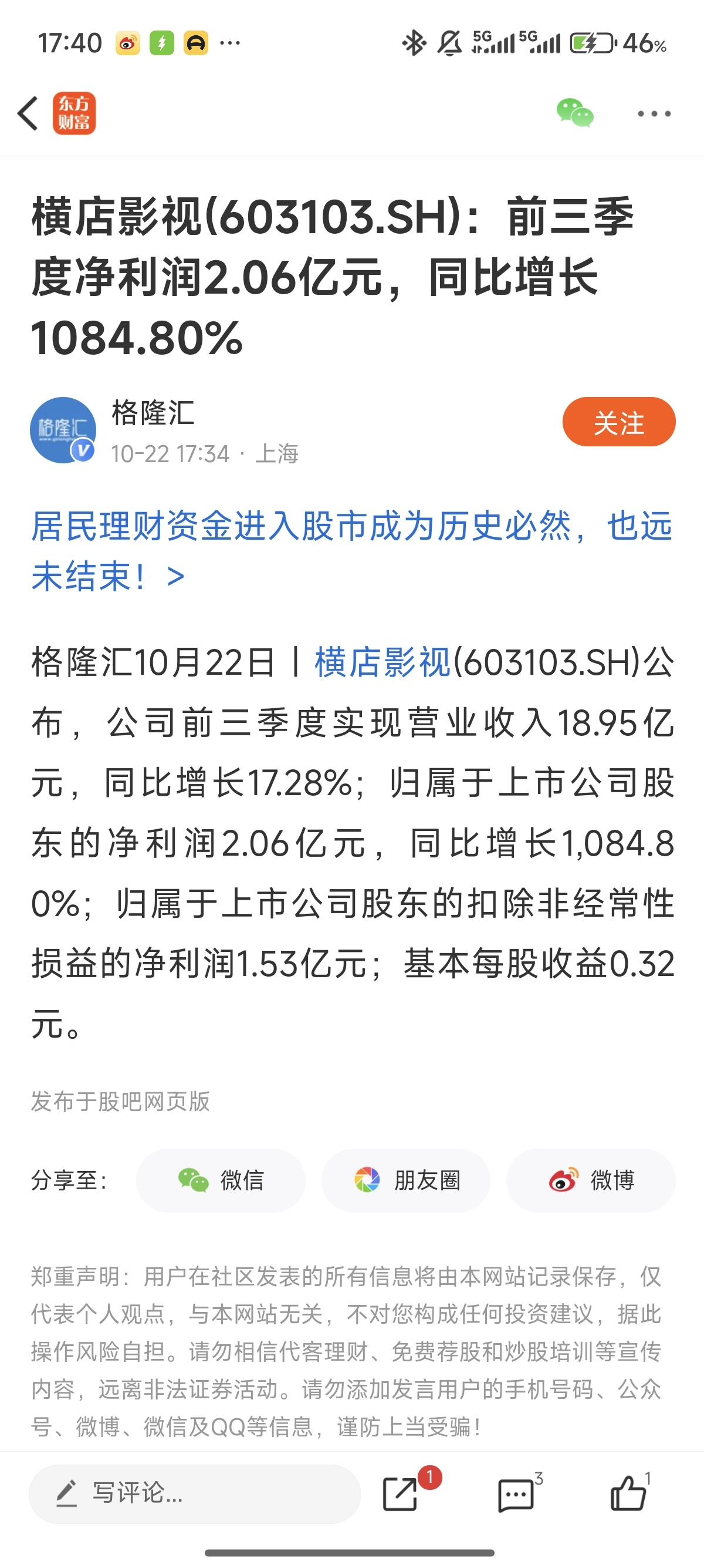 温馨提示: 1.根据《证券法》规定,禁止编造、传播虚假信息或者误导性信息,扰乱证券市场;2.用户在本社区发表的所有资料、言论等仅代表个人观点,与本网站立场无关,不对您构成任何投资建议。用户应基于自己的独立判断,自行决定证券投资并承担相应风险。《东方财富社区管理规定》