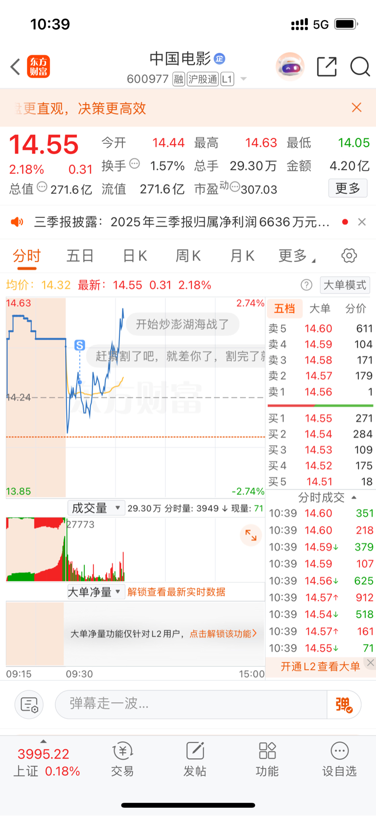 $中国电影(SH600977)$ 我丢,清了一半,长期做吧,为自己看电影自由