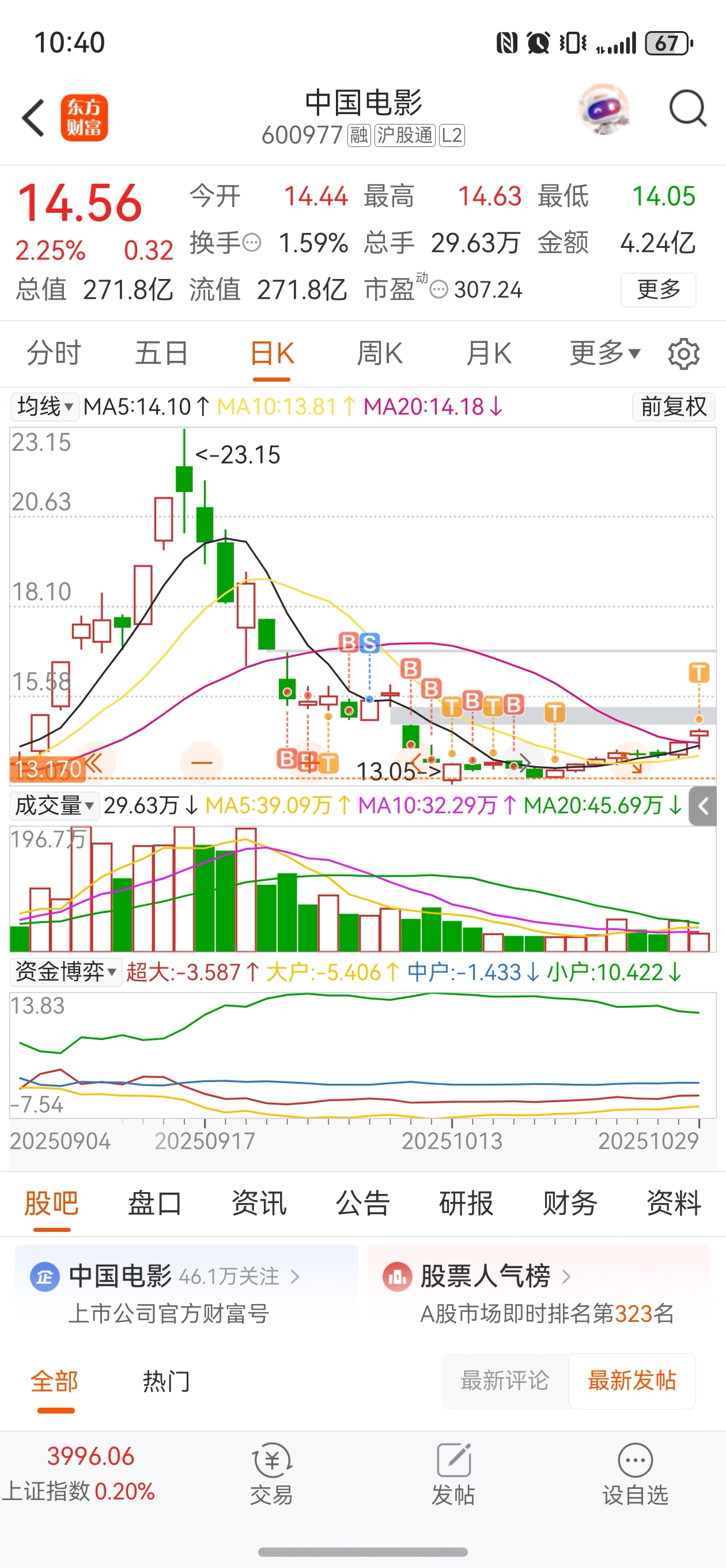 $中国电影(SH600977)$ 15我就走,感谢老板!