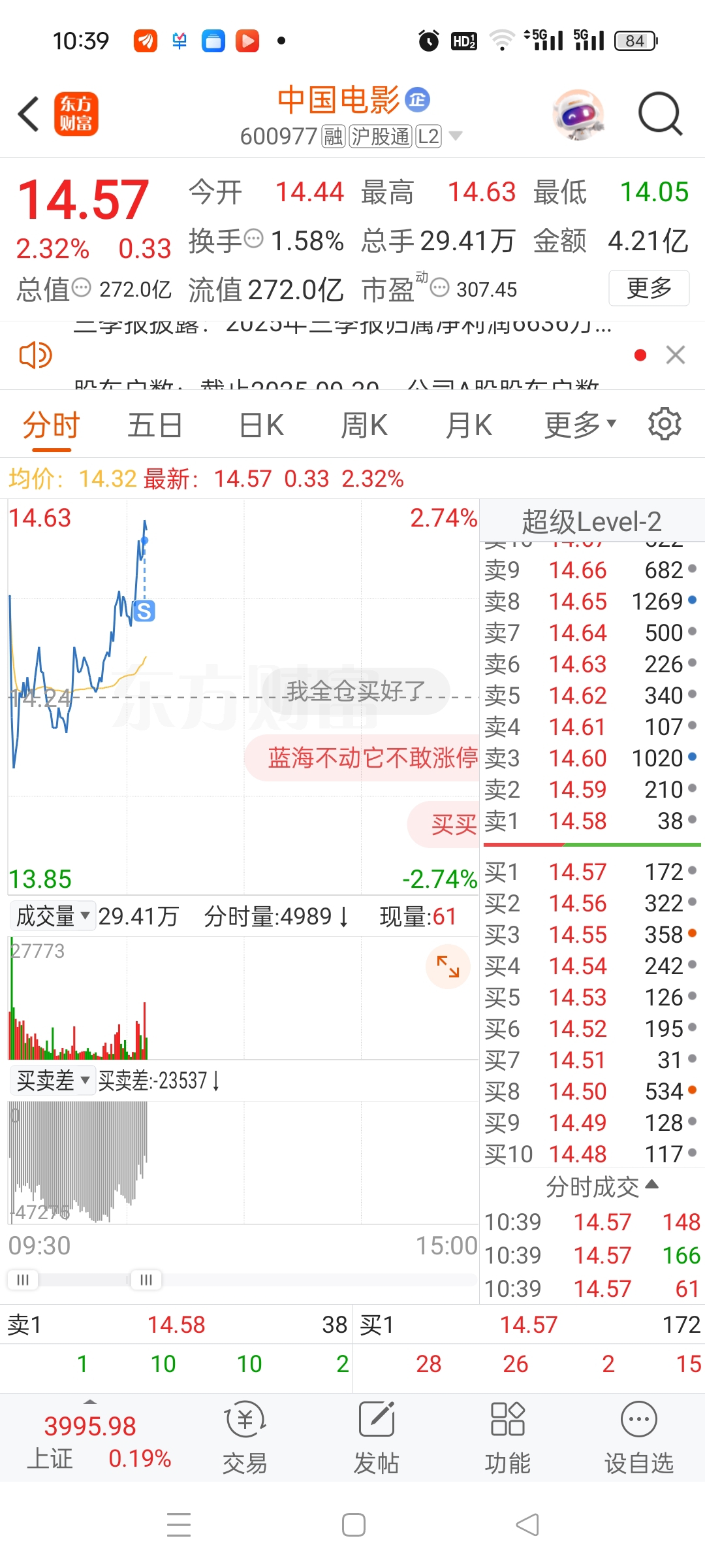 $中国电影(SH600977)$ 中国电影,卖了!
