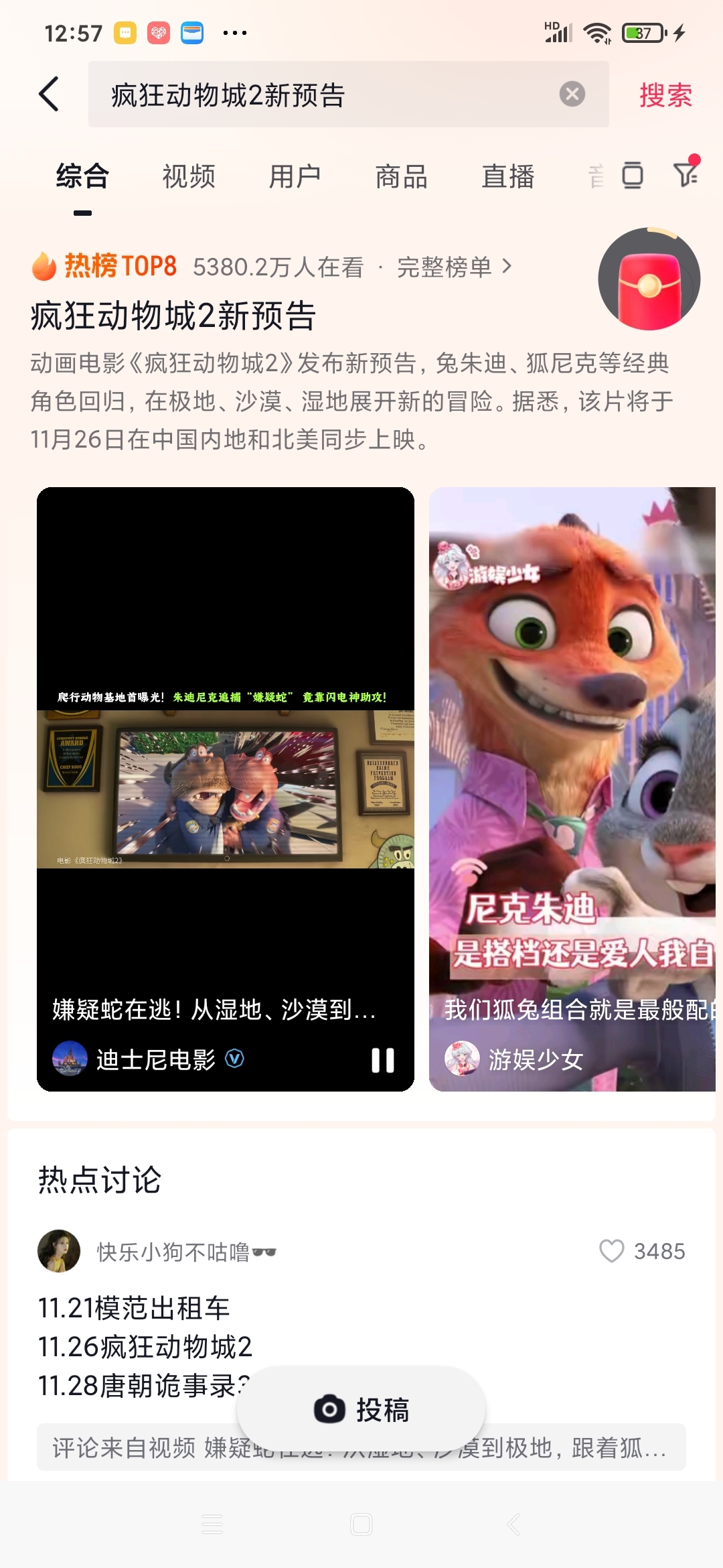 $中国电影(SH600977)$ 疯狂动物城也有热度了!