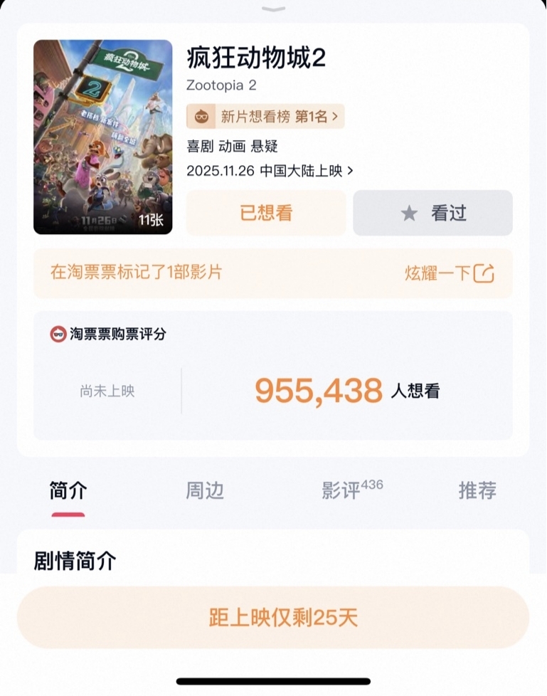 主力看没淘票疯狂动物城2快一百万了!大家继续点击呀