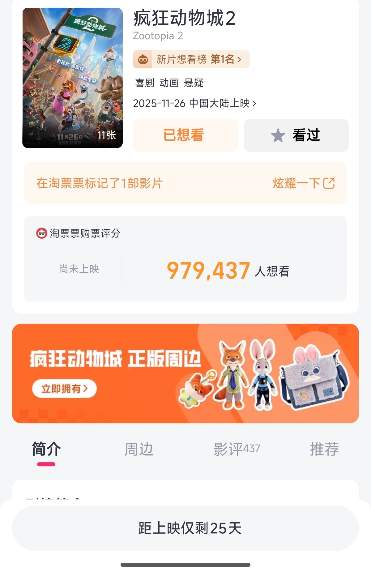《疯狂动物城2》哪家公司引进?距离上映还有快一个月。想看人数马上破100W?