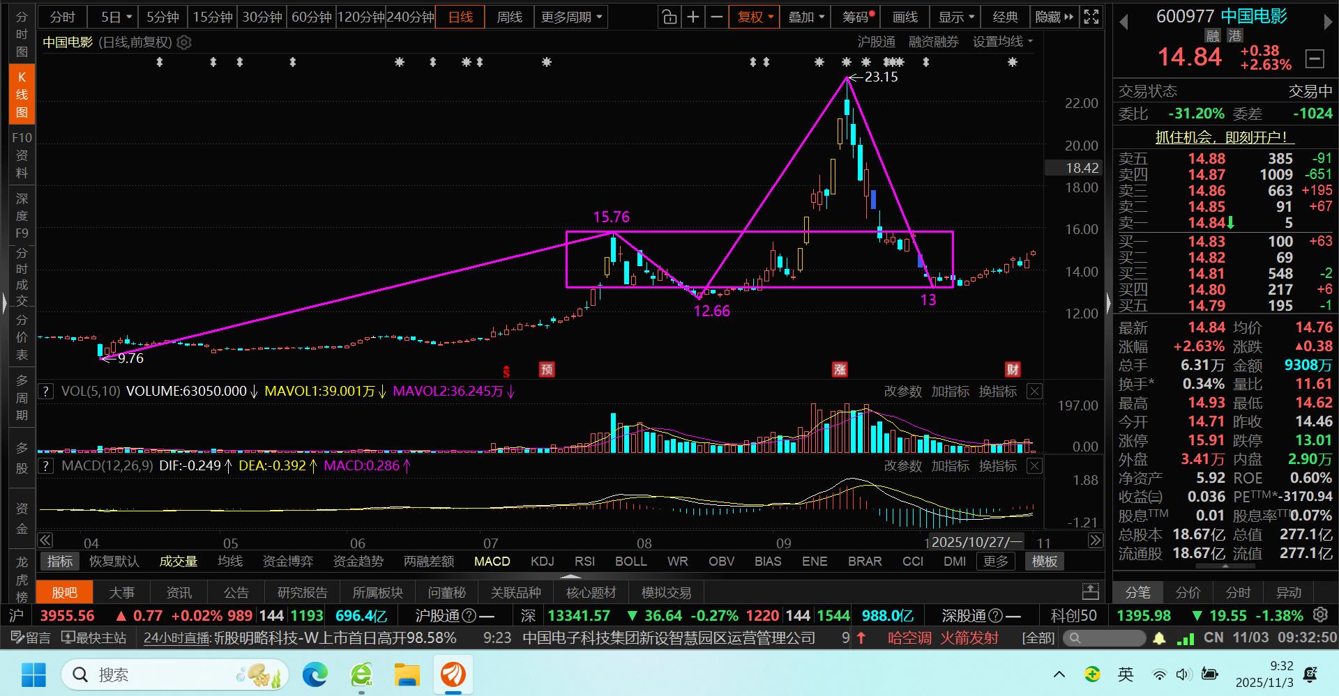 11月3日买入中国电影,疯狂动物城2概念+技术良好