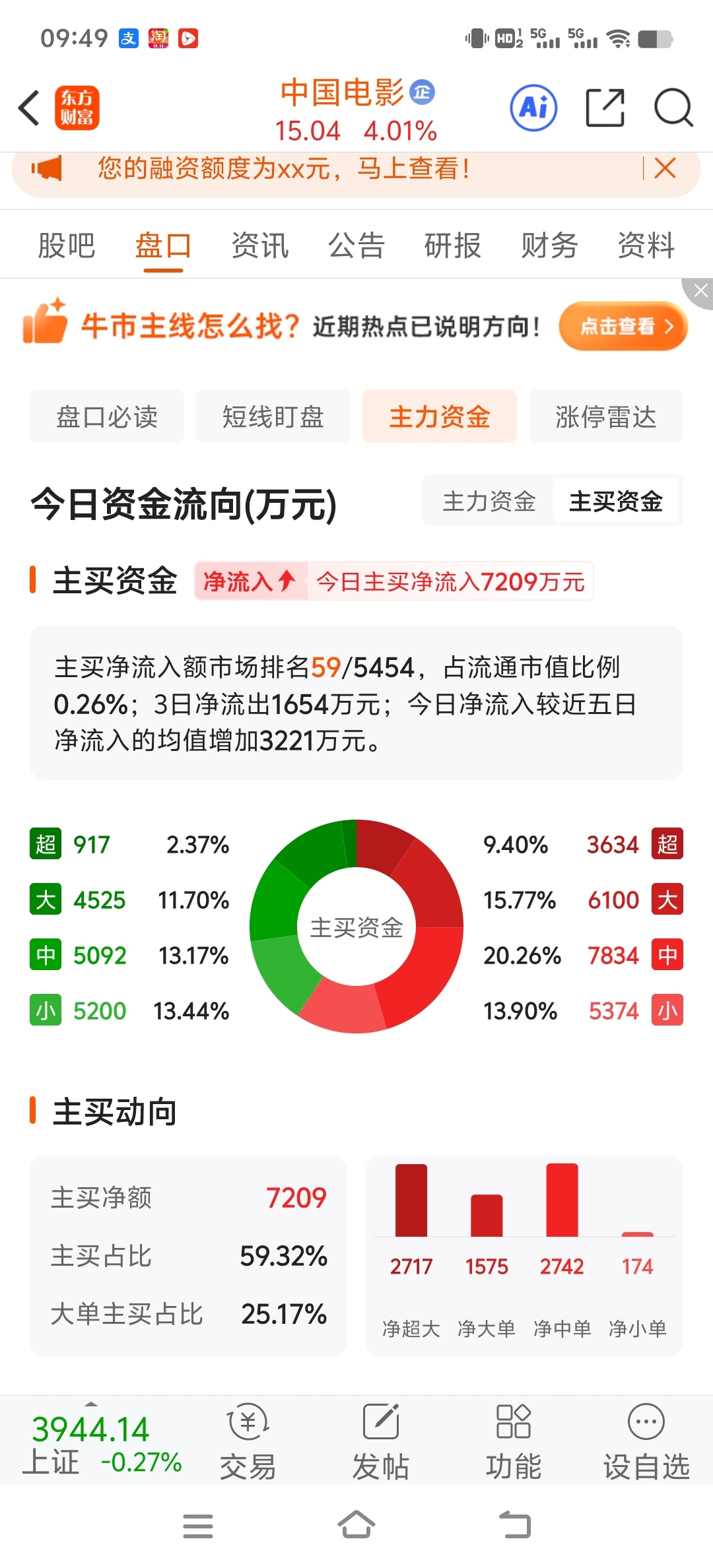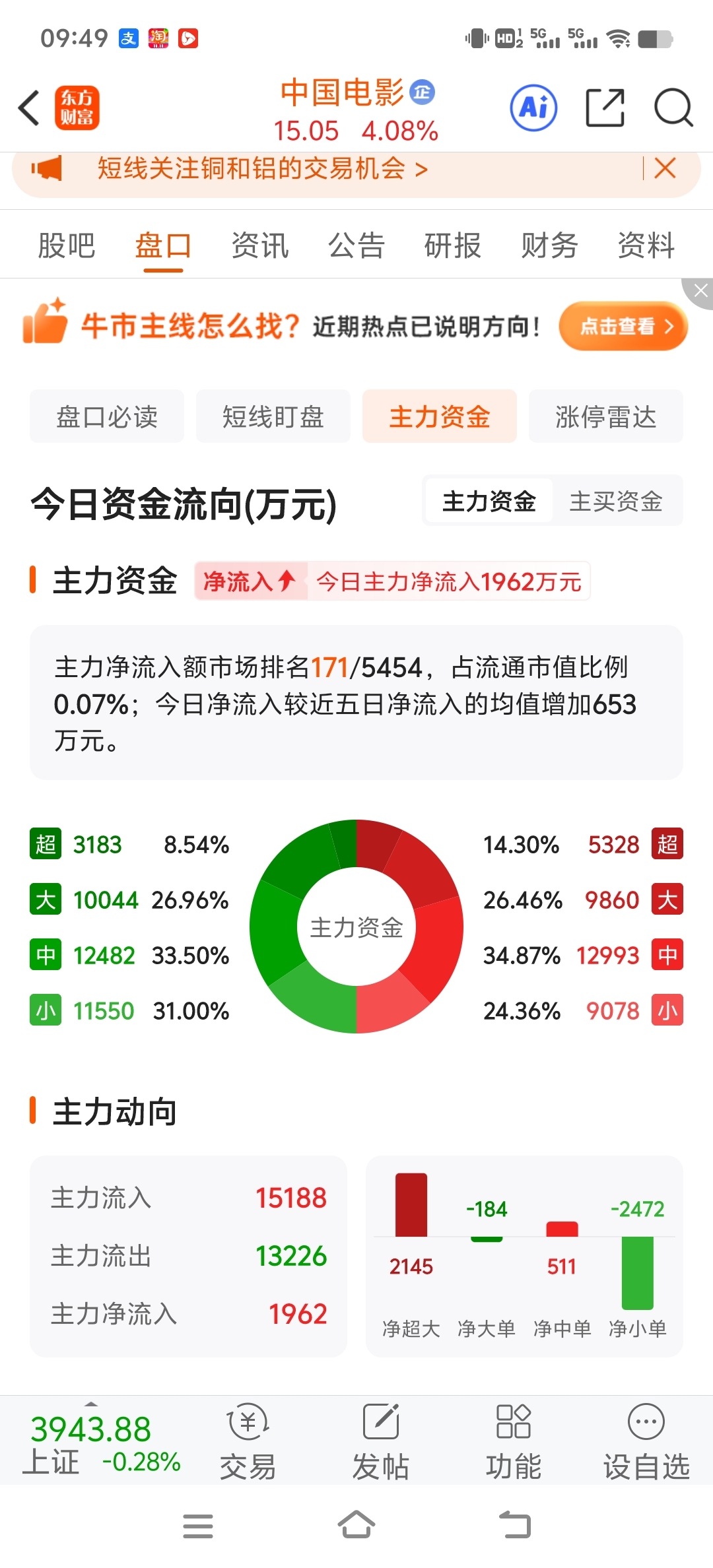 $中国电影(SH600977)$ 大家别卖,主力扛不住的