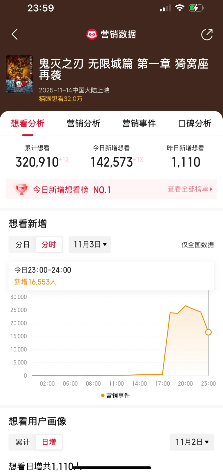 $中国电影(SH600977)$ 鬼灭之刃有点超出我的意外了.... 晚上6点定档 6个小时想看人数 突破14万....应该是历史最高了