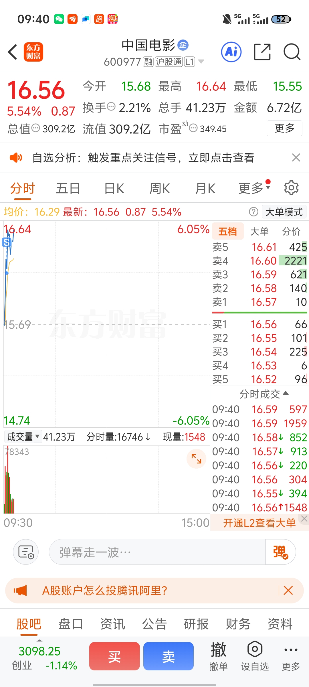 $中国电影(SH600977)$ 不如不看盘
