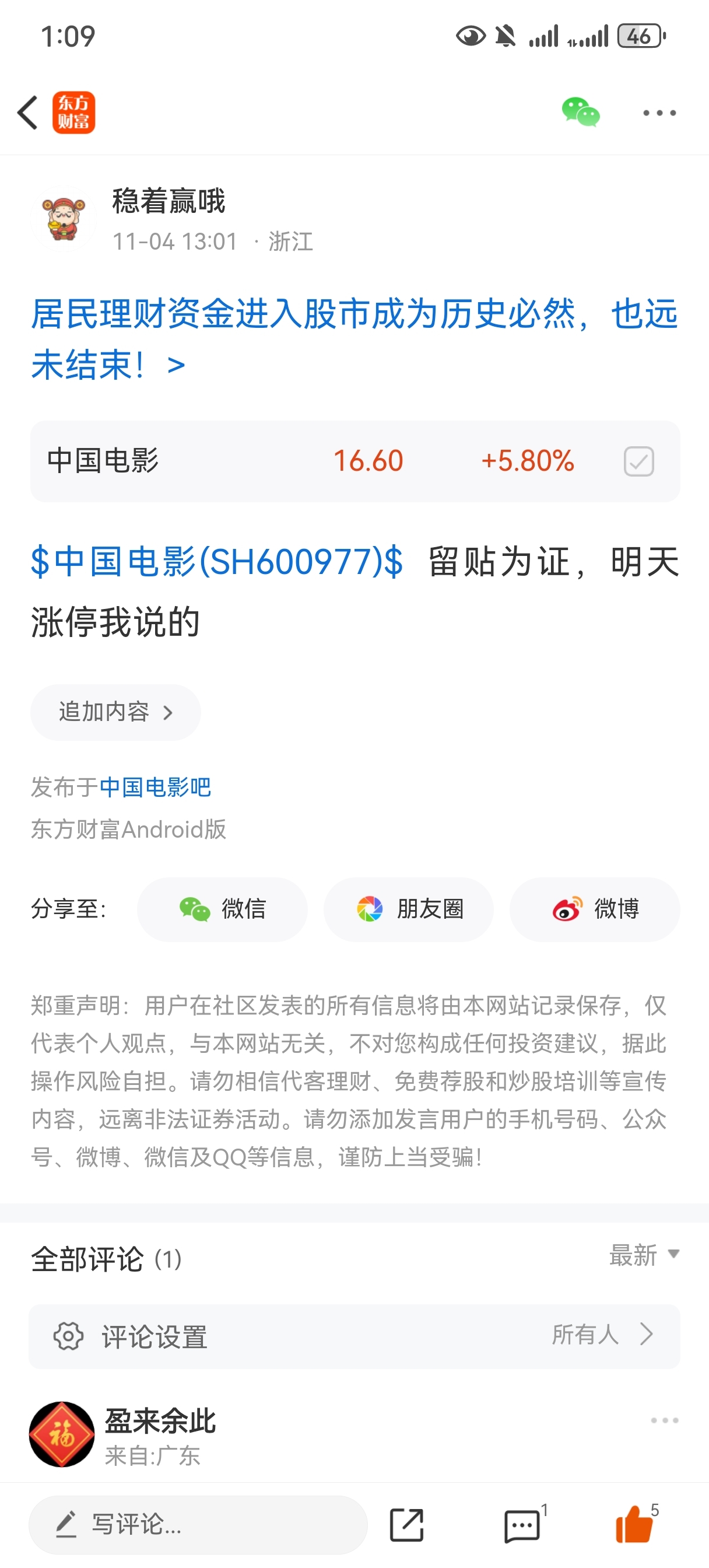 温馨提示: 1.根据《证券法》规定,禁止编造、传播虚假信息或者误导性信息,扰乱证券市场;2.用户在本社区发表的所有资料、言论等仅代表个人观点,与本网站立场无关,不对您构成任何投资建议。用户应基于自己的独立判断,自行决定证券投资并承担相应风险。《东方财富社区管理规定》