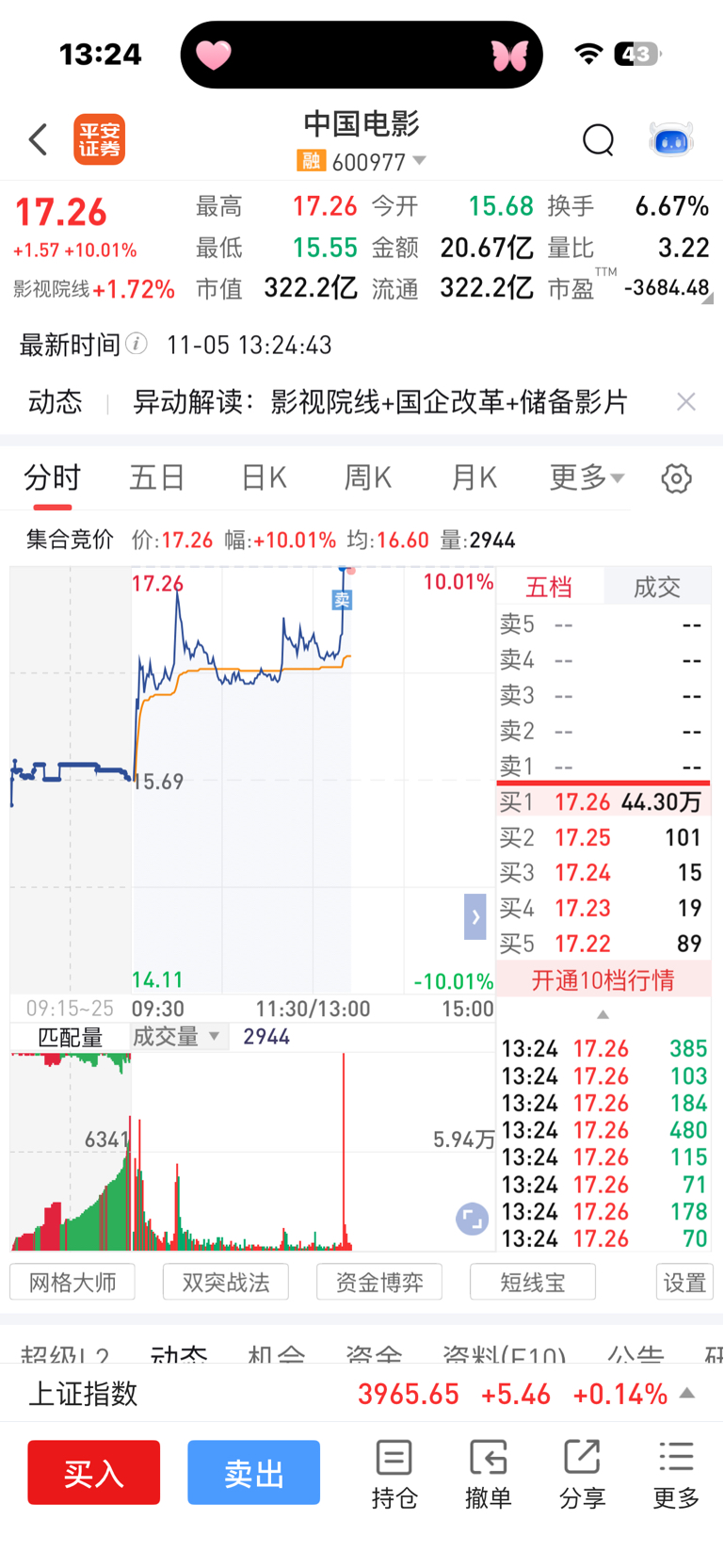 $中国电影(SH600977)$ 感觉卖早了。还给机会接回来不