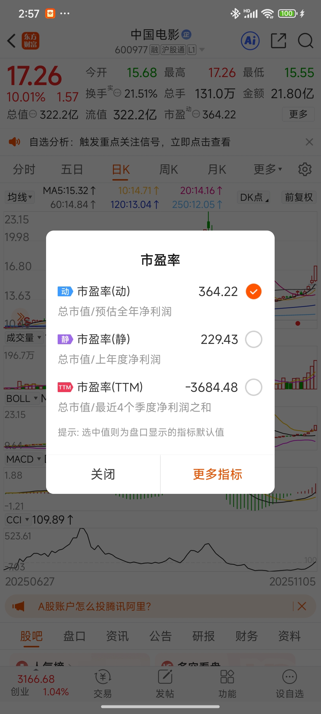 $中国电影(SH600977)$ 你涨停了