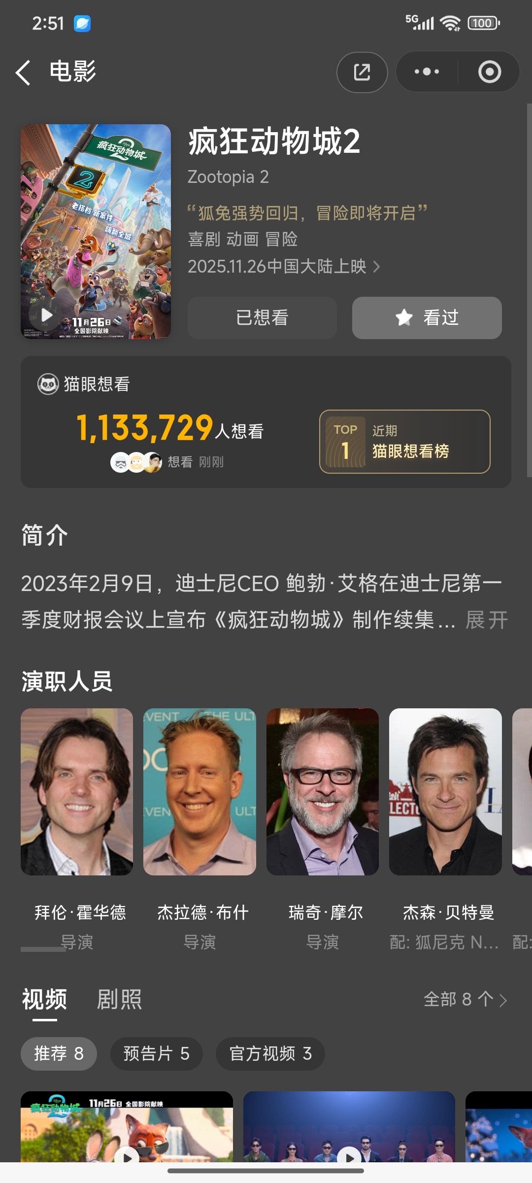 三部大片想看热度继续飙升,疯狂动物城2已达113万多了,中国电影加油!