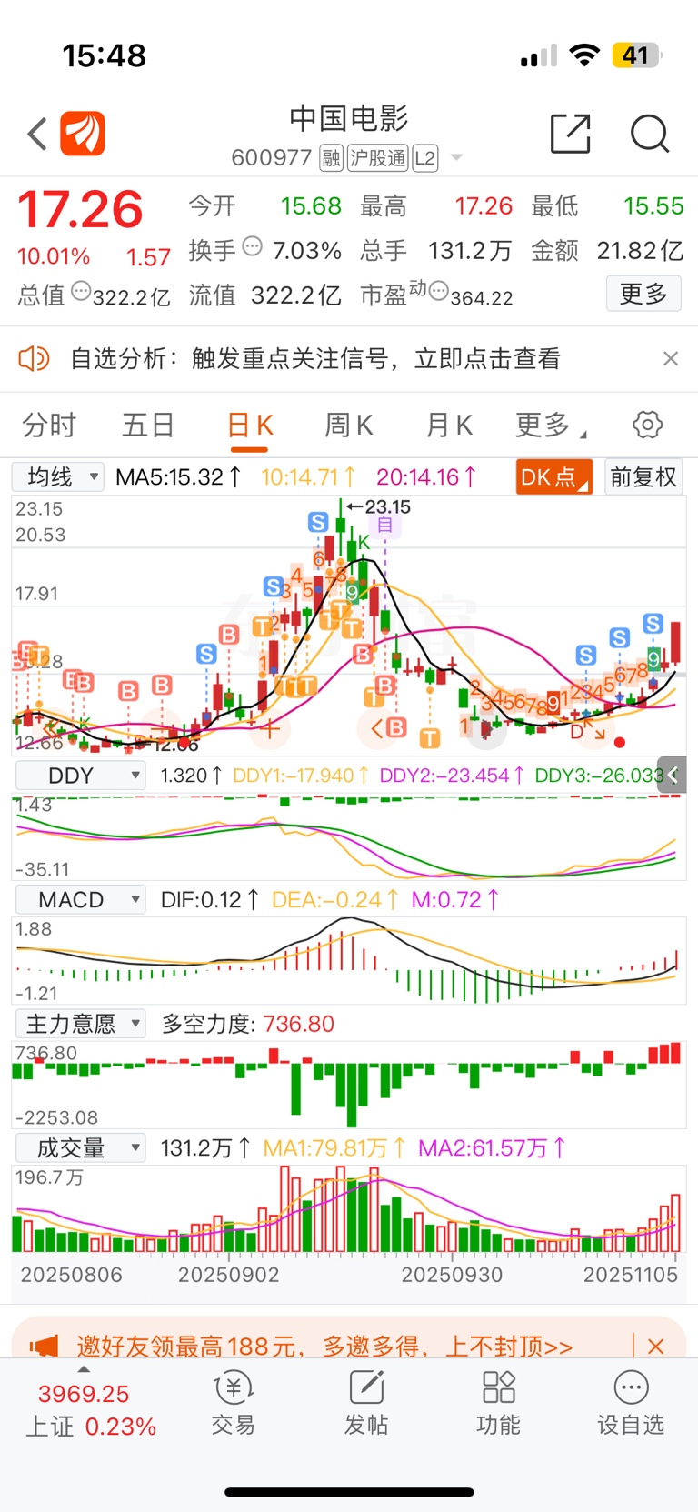 $中国电影(SH600977)$ 倒在黎明前,知道你会涨没想到这么快