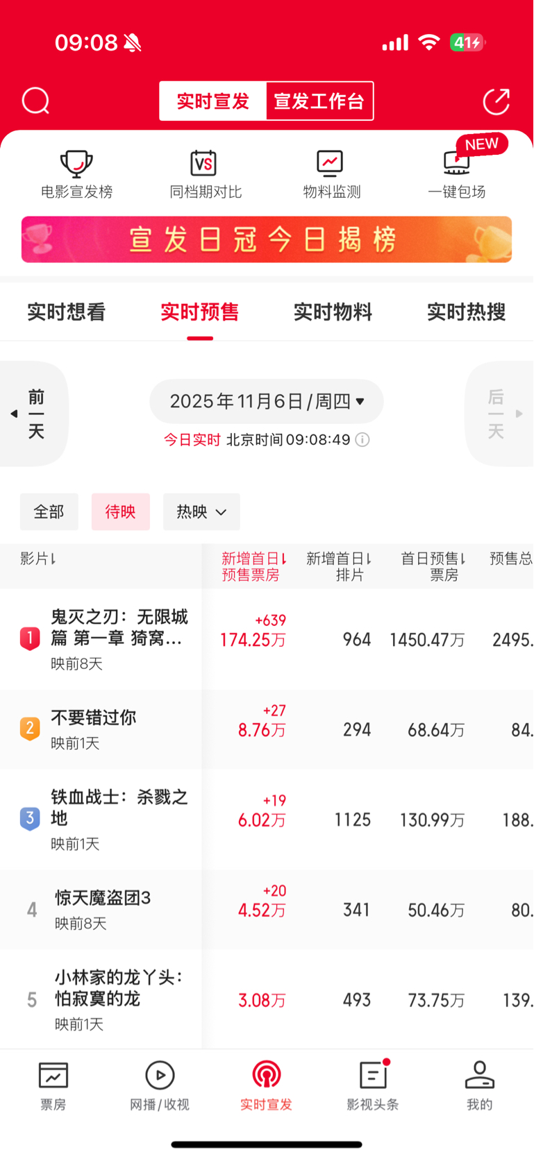 $中国电影(SH600977)$ 鬼灭上映前8天预售都2000多w了,我电影票还没买呢,再过几天肯定上亿吧
