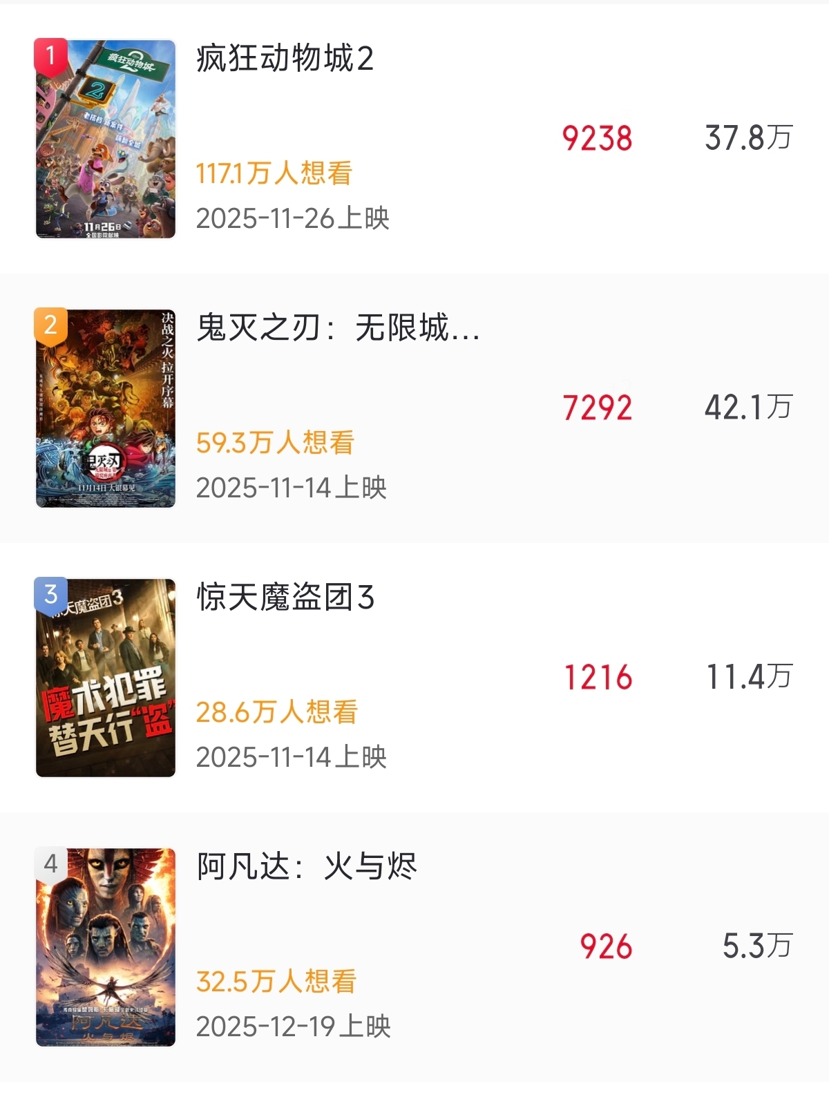 11月就看中国电影!11月12月想看超百万!前4名想看电影排名!全是国外经典电影