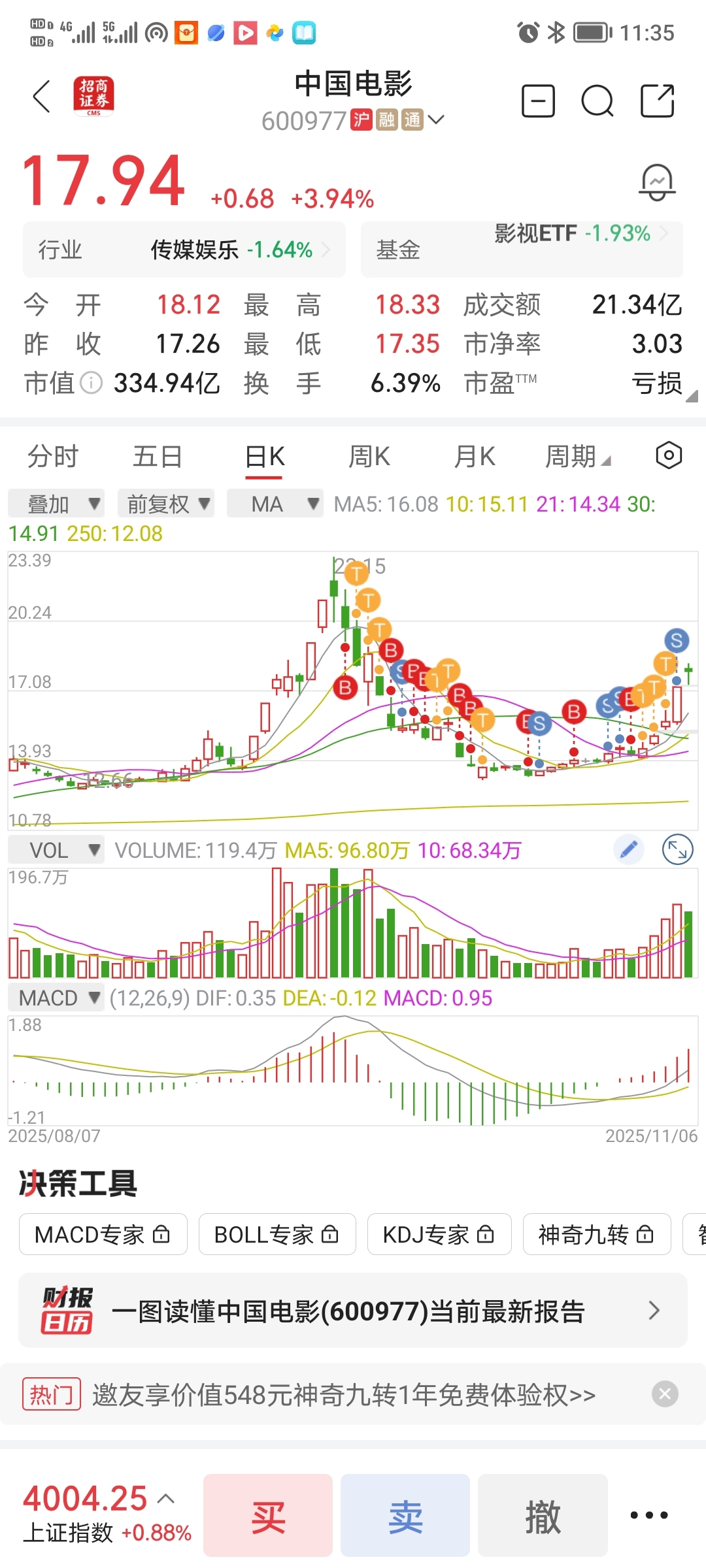 $中国电影(SH600977)$ 尾盘不砸绿,明天也是低开四个点起步
