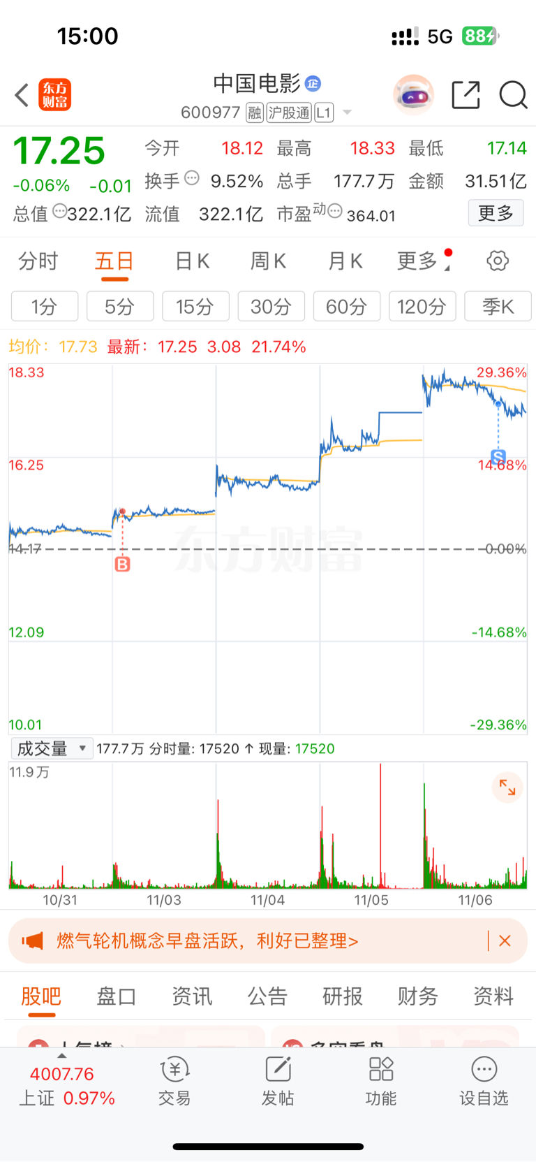 $中国电影(SH600977)$ 祝你们发财,过几天我再回来