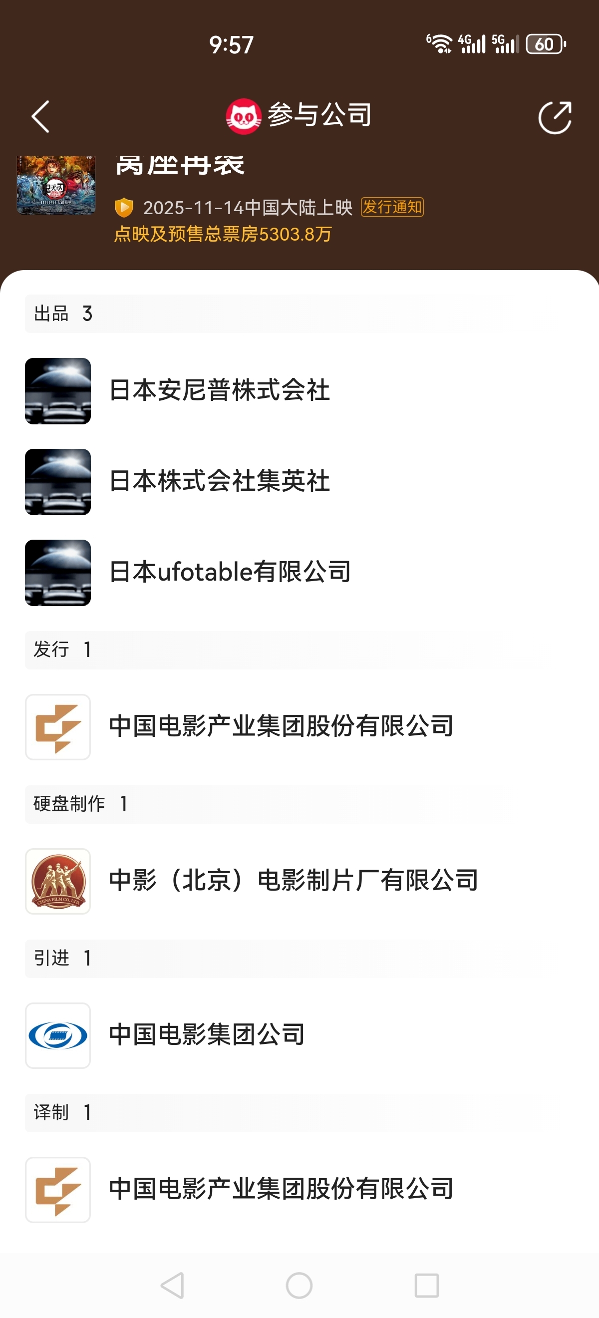 $中国电影(SH600977)$ 看好了,目前中影属于国内鬼灭唯一发行方,鬼灭预售两天已经5300万票房了