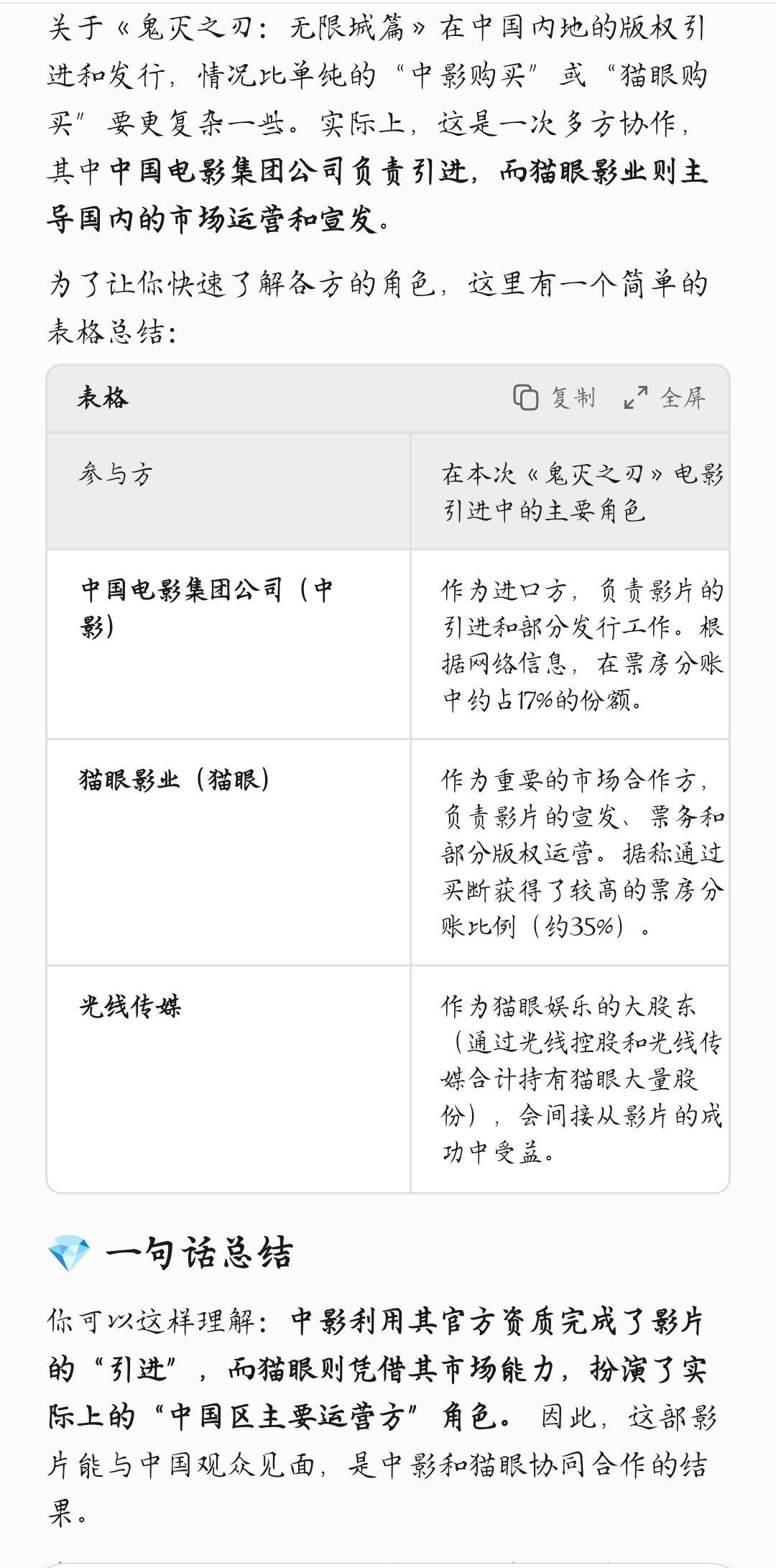 $中国电影(SH600977)$ 等鬼灭上映, 王长田眼光毒辣,手握猫眼和光线,光线控股猫眼,拿一部分去光线埋伏一点儿了