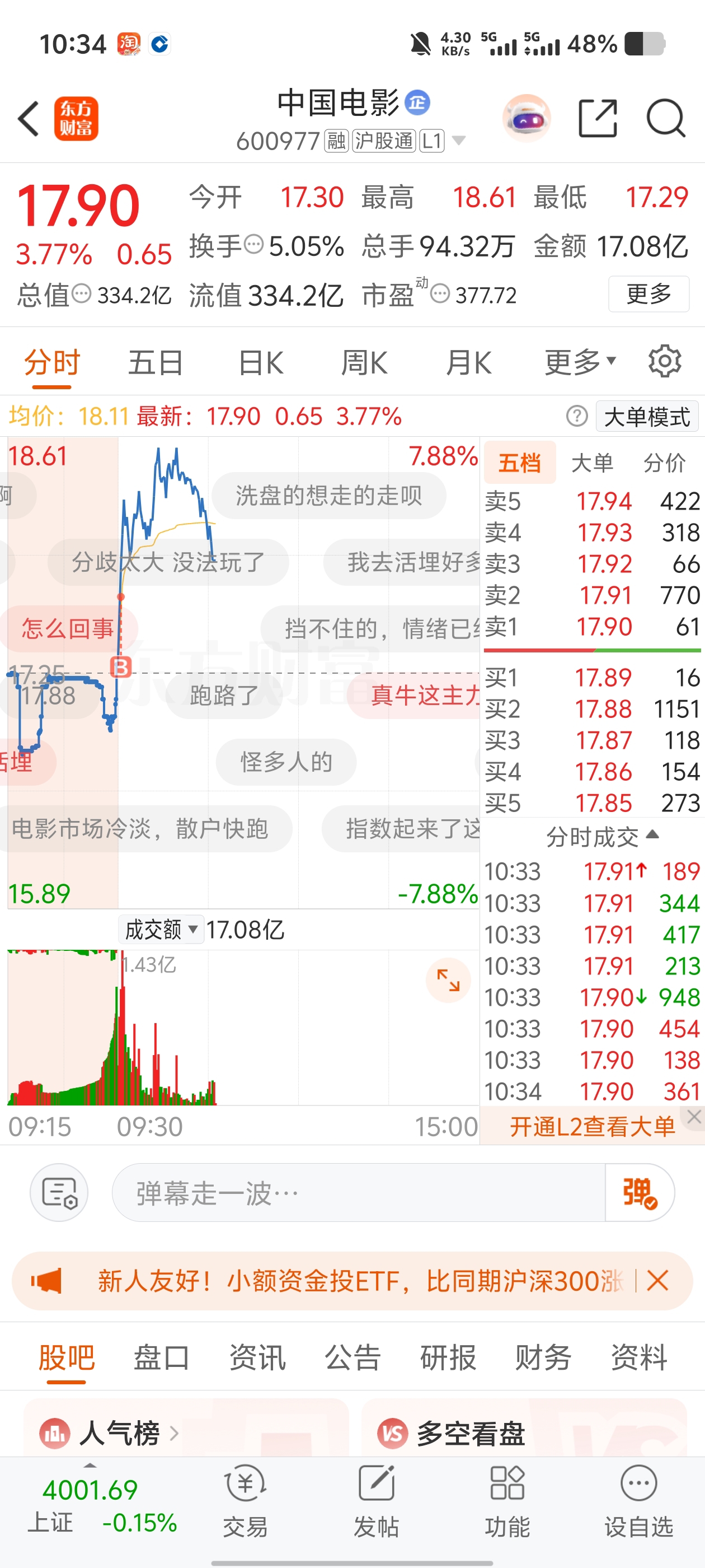 $中国电影(SH600977)$ 谁买崩的,反正不是我