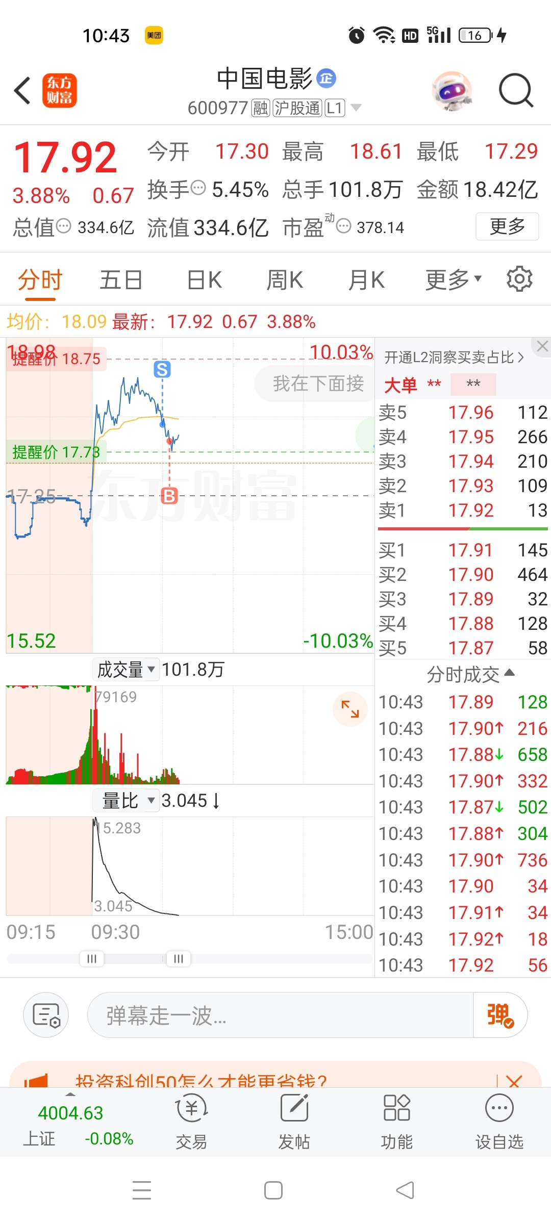 $中国电影(SH600977)$ 管不住手,只有这样,以免卖飞